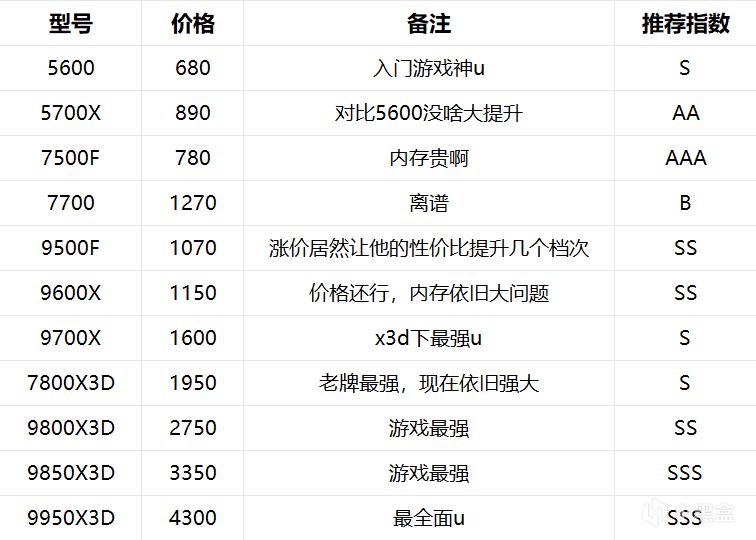 不带X3D游戏性就9700x,带X3D就是983。需要注意的就是玩游戏会有缓存调度问题。贵不是他的缺点,他值得这个价格