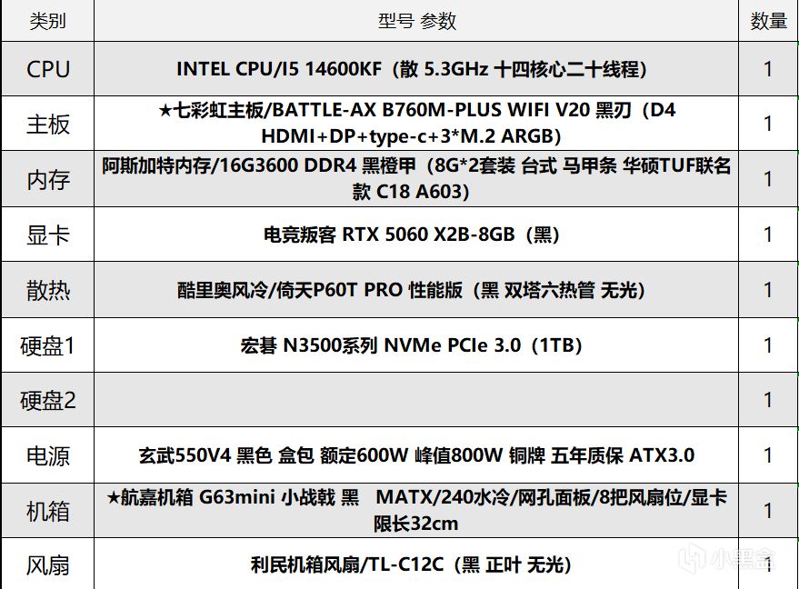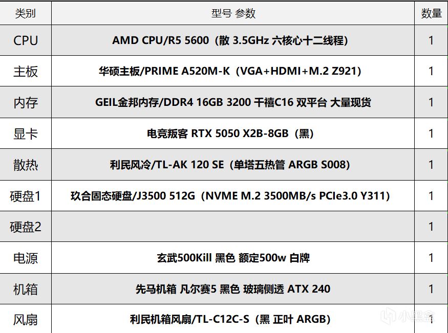 接下来给大家写几套各个价位的配置表,可以作为参考,主页也有各个配件的硬件知识。