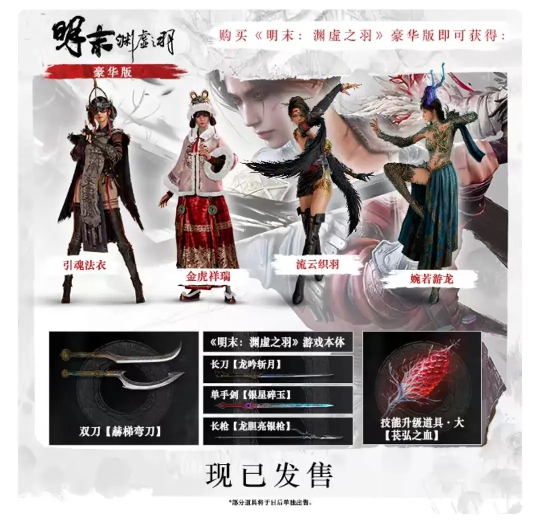 《明末:渊虚之羽》是一款类魂动作角色扮演游戏,故事发生在巴蜀之地,此时正值黑暗动荡的明末,战事四起,一场神秘的疫病催生了妖怪一般的生物······