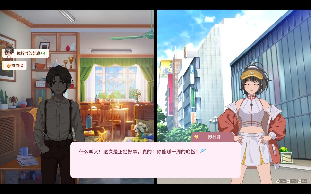 谭梓君像是热血少年漫的主角,富有反抗精神,拥有保持激情, 说干就干带着主角夺回播音室。游戏里每一个角色都有各自的人物弧光,每回合当务之急就是看看有没有角色支线剧情触发。通过支线剧情,我们能了解到谭梓君家教严格,会弹钢琴。这种反差感让角色更加立体,更具魅力。
