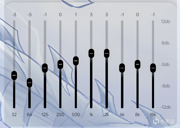 右下角的那排阻尼滑块则是供玩家自己进行手动调整EQ的,其中32-250HZ为低频段,500-4kHZ为中频段,8k-16k为高频段,我们可以根据自己使用的需求进行调整。