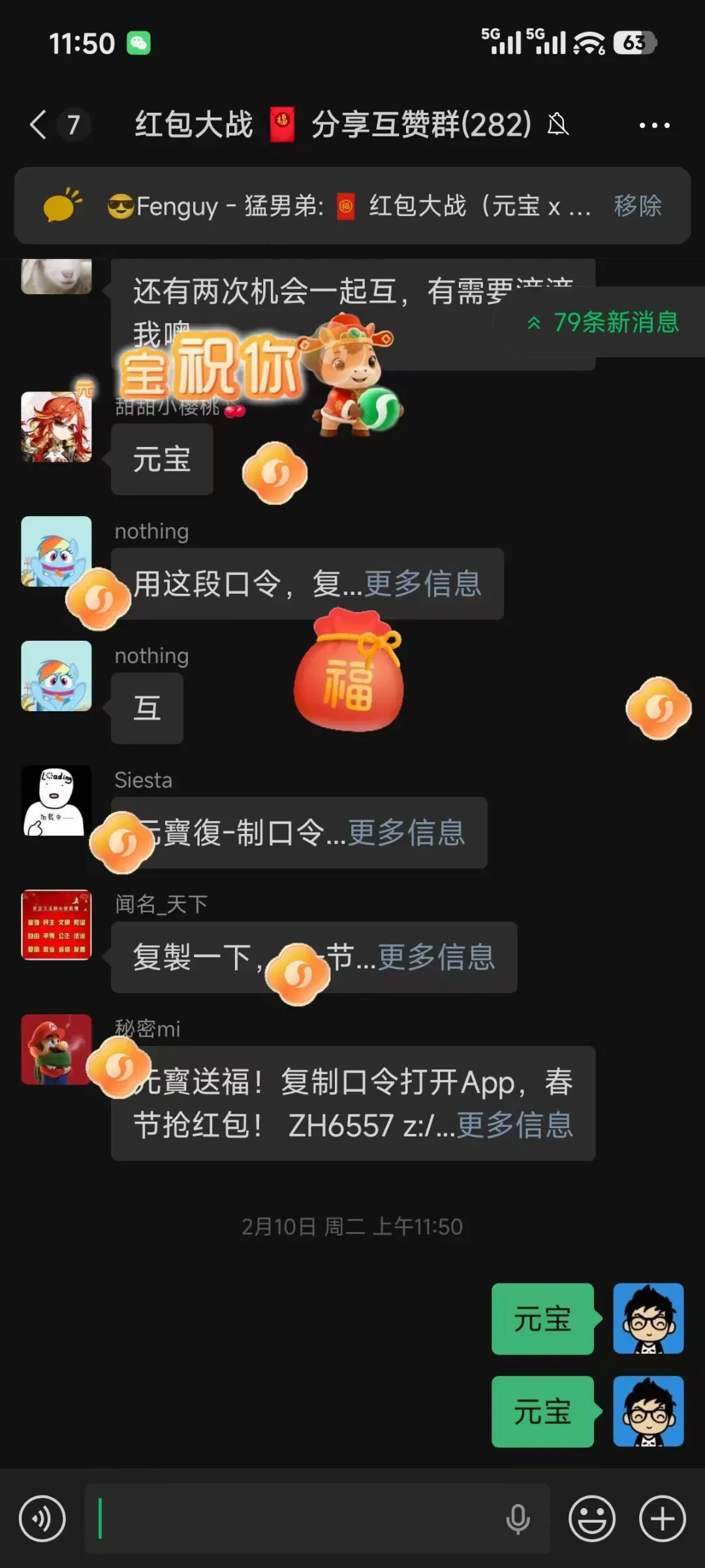 如果发送「元宝」只有福袋没有红包,那么可以多试几次,主要就是图个喜庆。根据部分网友反馈,运气好的话多次发送还有多个红包。