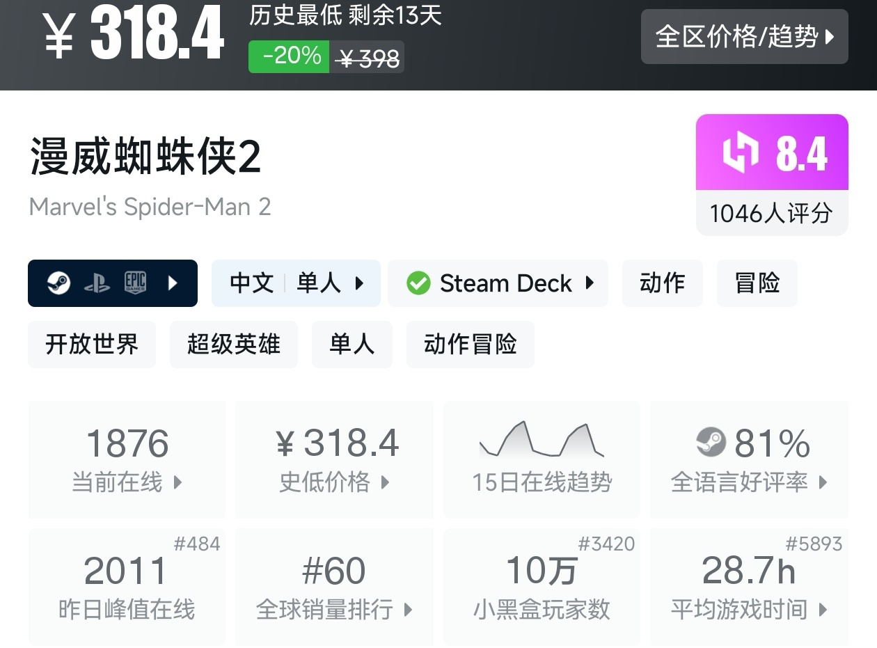 大家好,在今天,知名遊戲廠商索尼旗下游戲就迎來了折扣,只能說,索尼很懂,因爲馬上就到春節,並且這次折扣持續十幾天,能夠幾乎涵蓋整個春節,全場都是史低,甚至還有新史低,打折力度甚至不亞於季節大促活動,雖然遊戲本身不算便宜,接下來我將爲各位進行一個彙總,希望我的彙總,能夠幫助各位盒友挑選心儀的遊戲。