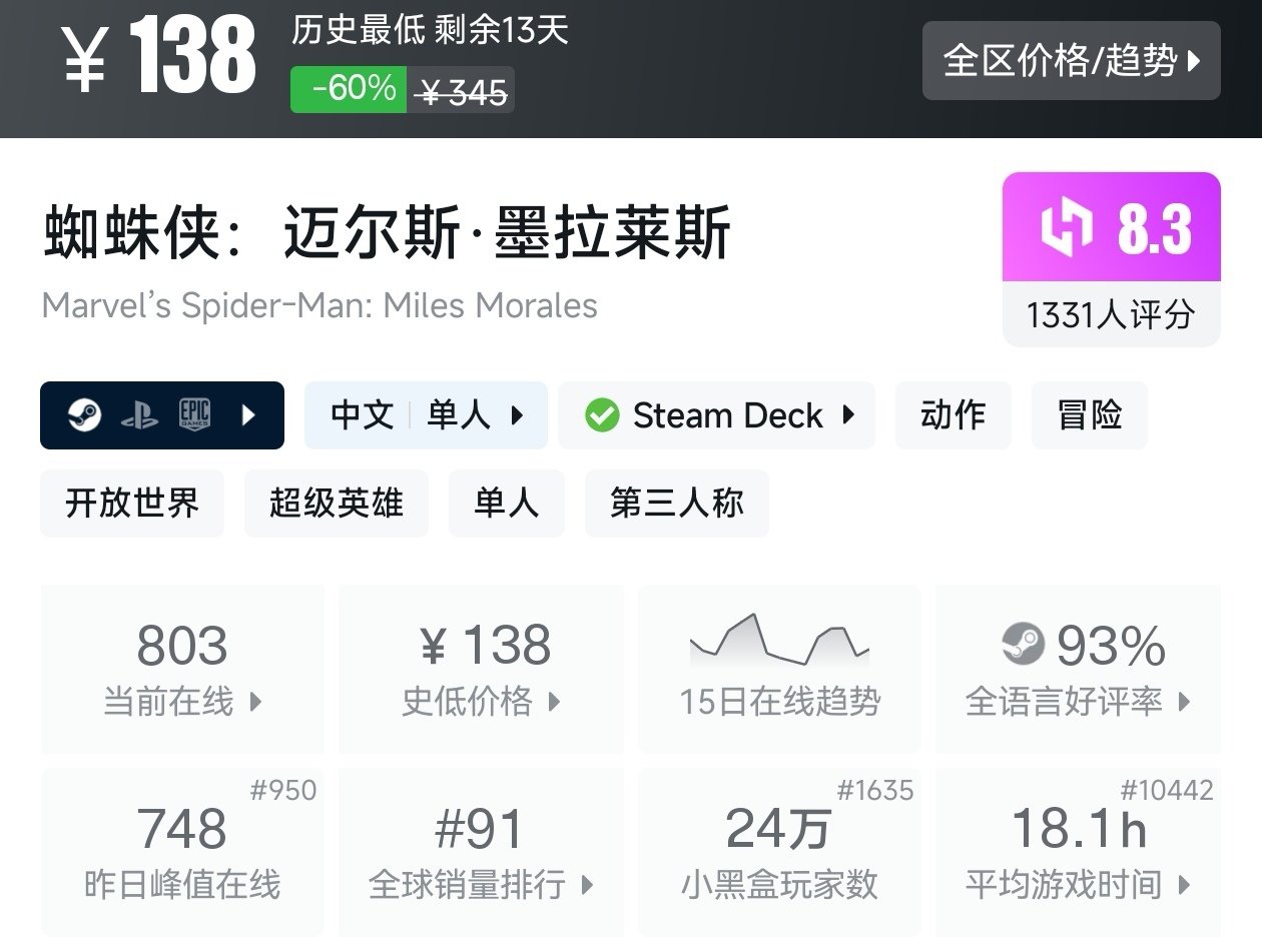 11.《漫威蜘蛛俠:邁爾斯·莫拉萊斯》