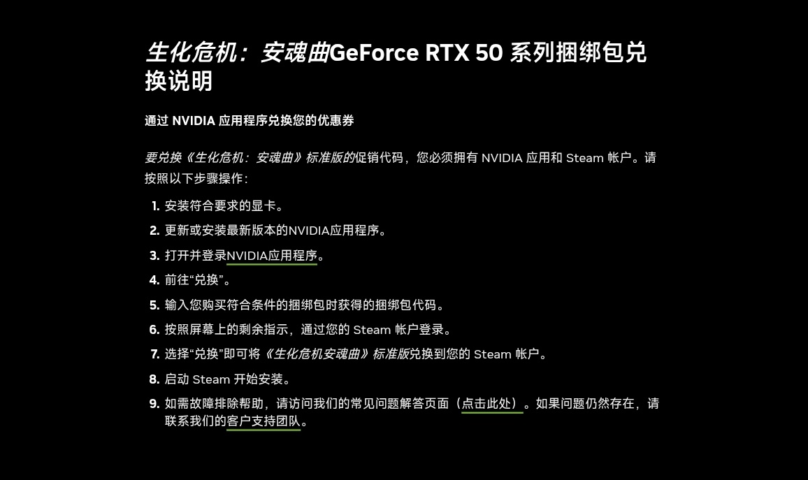 NVIDIA推出了一項新的遊戲捆綁包,從2026年2月10日起,購買指定GeForce RTX 50系列顯卡即可獲贈Steam版《生化危機:安魂曲》標準版。