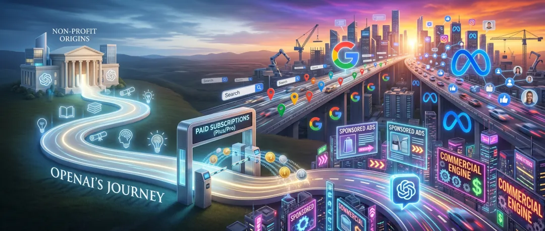 OpenAI 現在的動作就是在嘗試把 ChatGPT 變成一個真正的商業機器——從最初的帶有公益色彩,到後來的付費訂閱,再到現在的廣告植入,它走過的路和當年的谷歌、Meta 幾乎如出一轍。