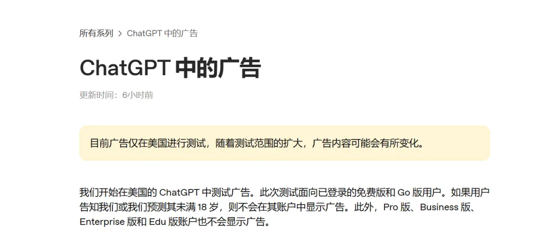 不過,就在這個寧靜的早晨,OpenAI終於還是按之前的計劃,在ChatGPT中加入了廣告。