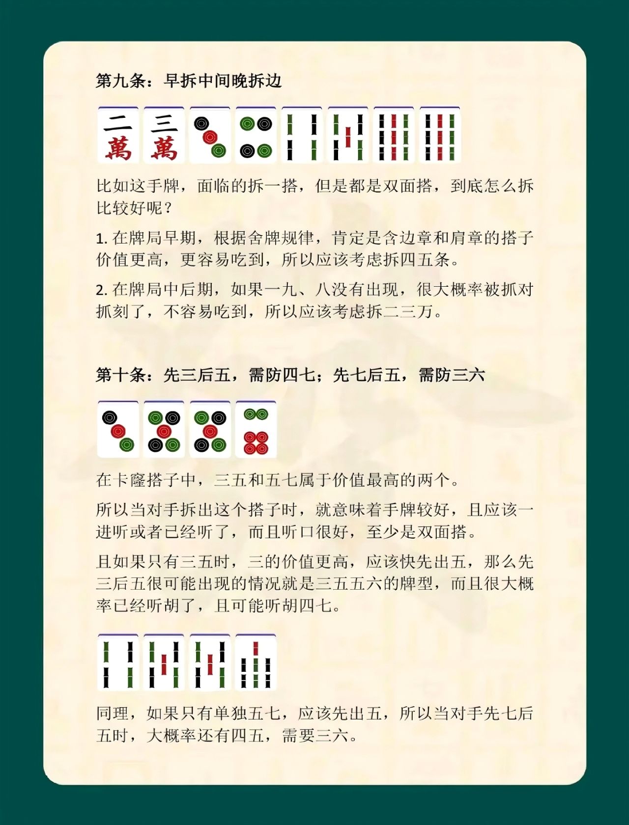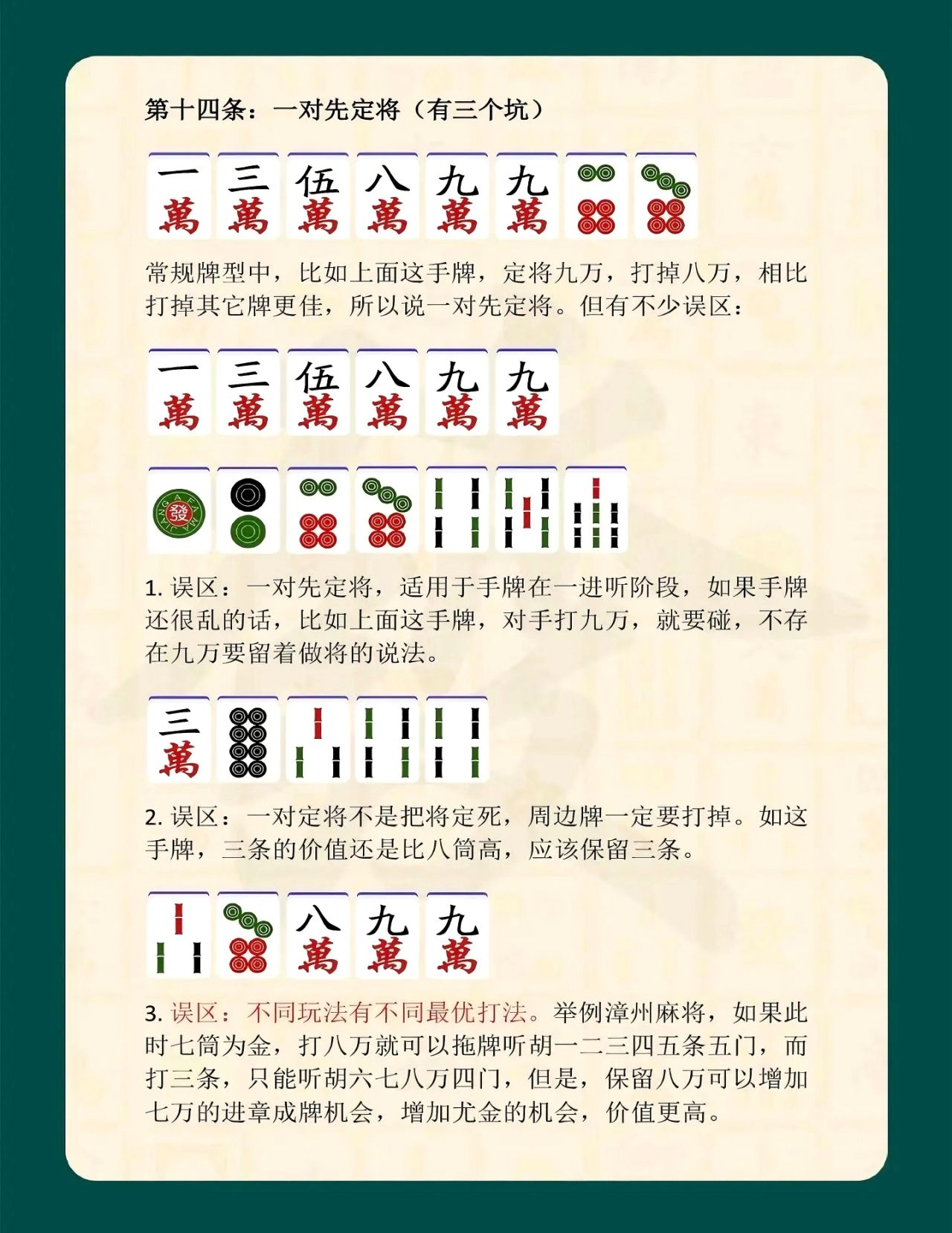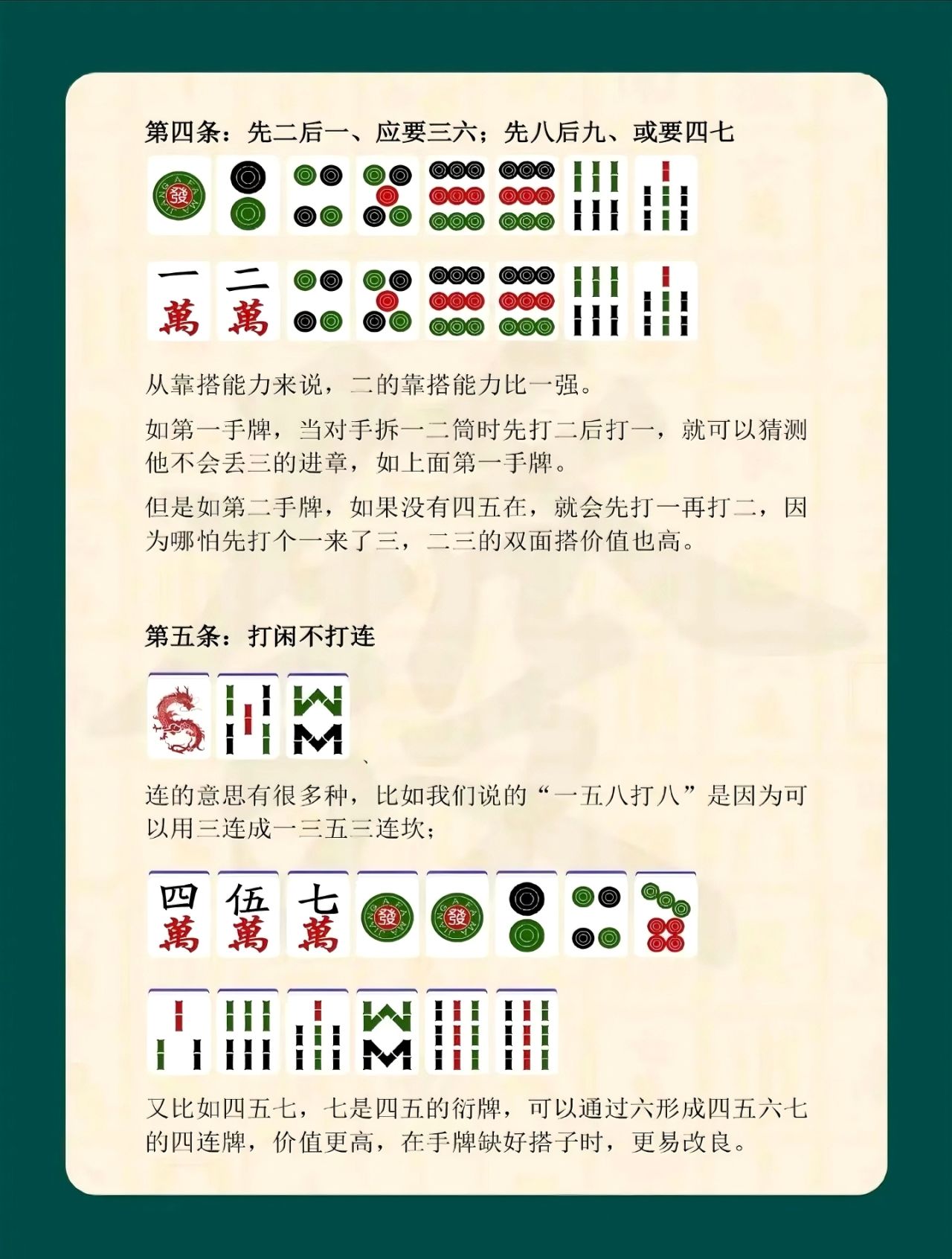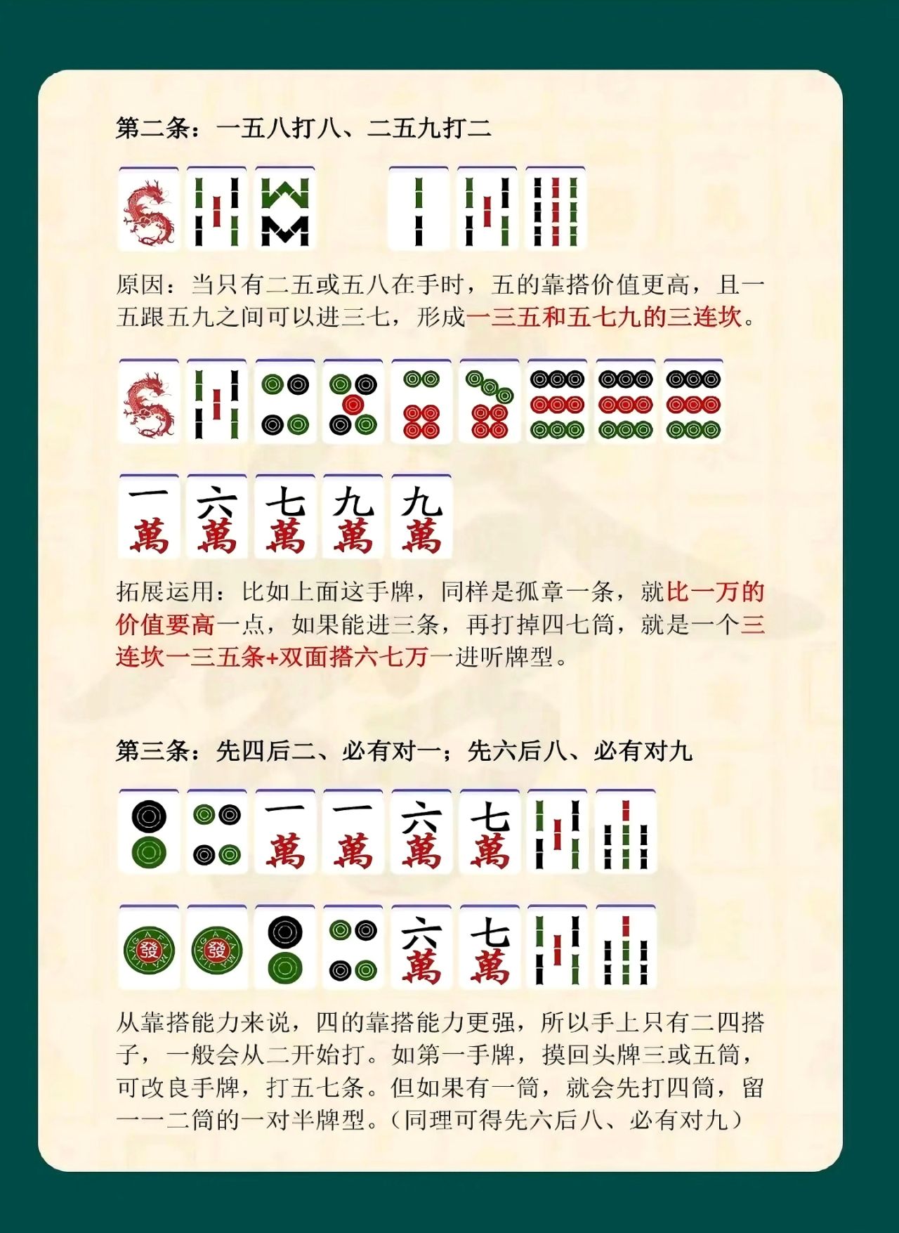 學習麻將口訣,重點在於理解背後的出牌原理與對局思維,而非機械套用。在實戰中,玩家需要結合手牌進度、場上局勢與對手風格,靈活調整打法。口訣的價值,在於提升判斷效率,讓手牌組合更合理,減少失誤概率。