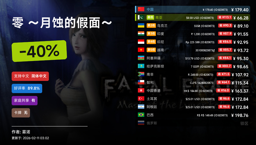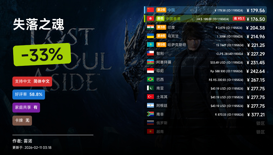 主要的地區爲,國區,港區,烏區,哈區,俄區,南亞,印度,阿塞拜疆,阿區,土區,智利,巴西,越南,印尼,南非。這十五個地區的價格