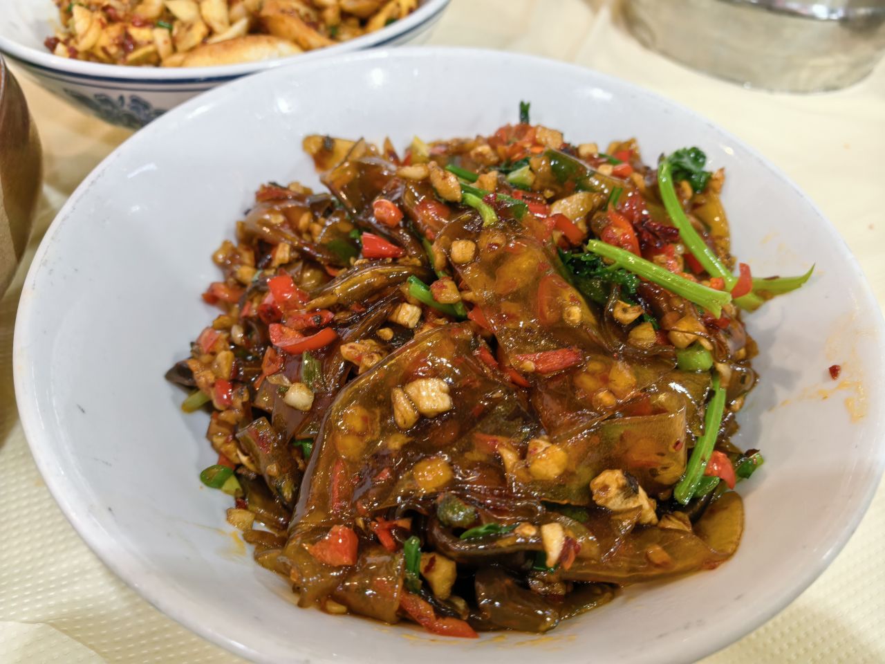 中途还去吃了笨萝卜湘菜馆。地方不难找,但人极多,屋内屋外都坐满了排队的人。人们高声谈笑,碰杯,辣椒的香气灼热地撞击着感官。