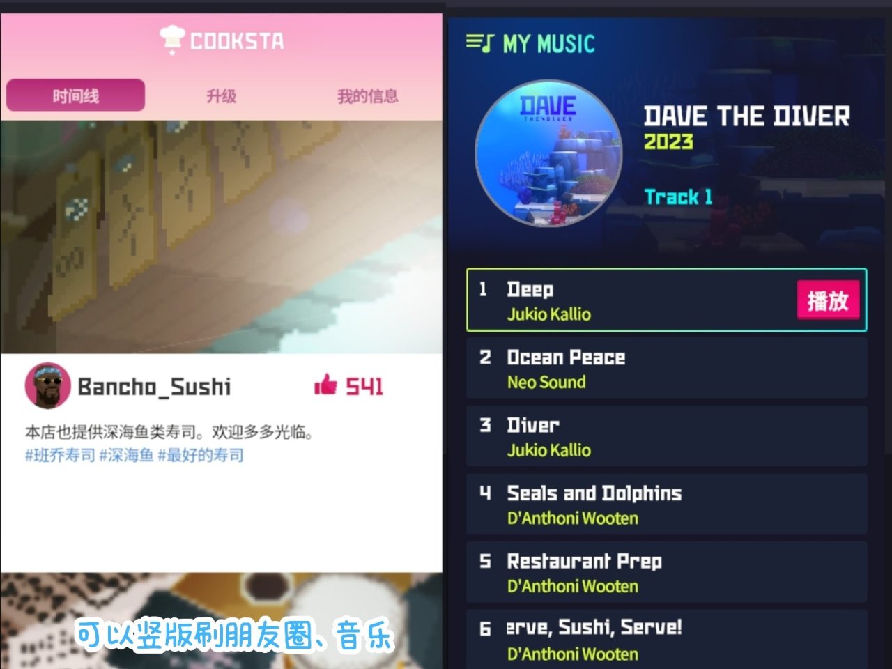 惊喜的是游戏的设定集也解锁了(在戴夫的手机里看),包含菜单还有鱼类等设计图,