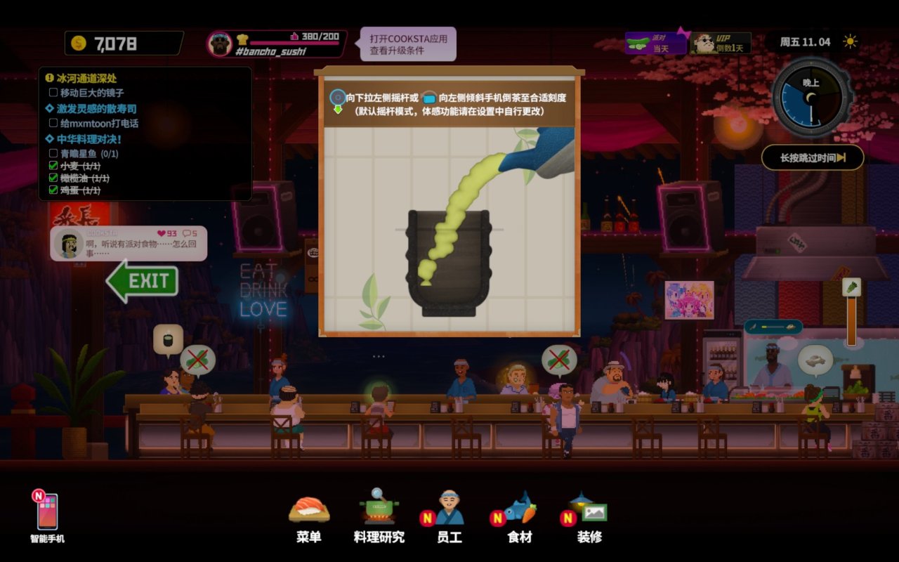 除此之外本作还有一个体感倒茶,你可以在设置的【游戏】里打开关闭,在寿司店玩的时候倾斜一下你的手机即可,不过要注意及时扶正!(茶🍵溢出来就不好了)