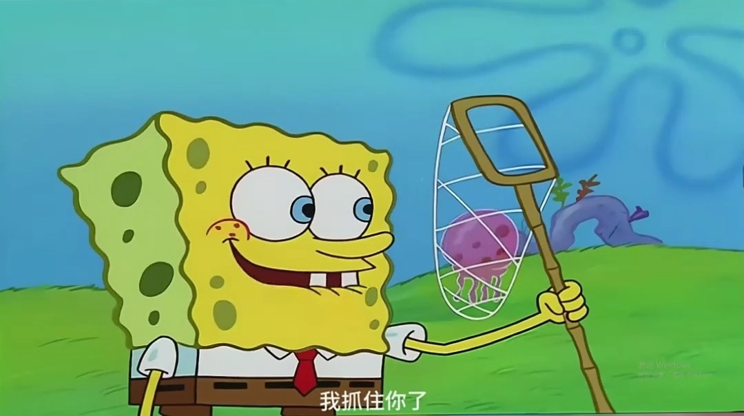 我第一次看到的感觉是:哇!好酷!海绵宝宝!我们一起抓水母吧!(何意味?)