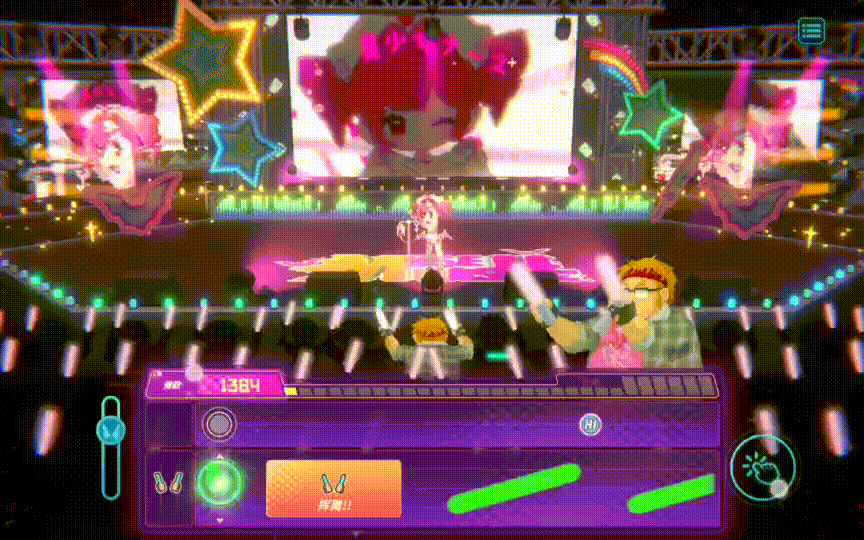 其次在第三章最后宅哥达夫做二次元梦后解锁手机里的音游小游戏,就可以玩喵斯的联动曲了,