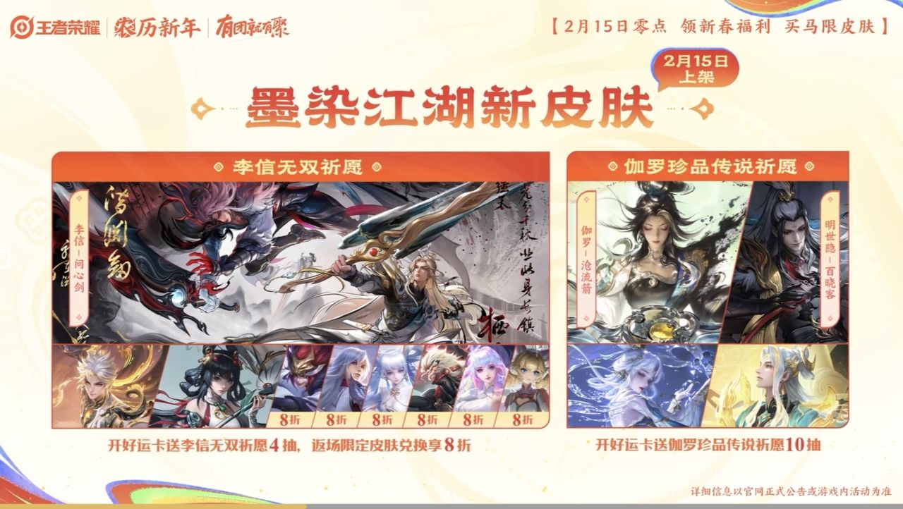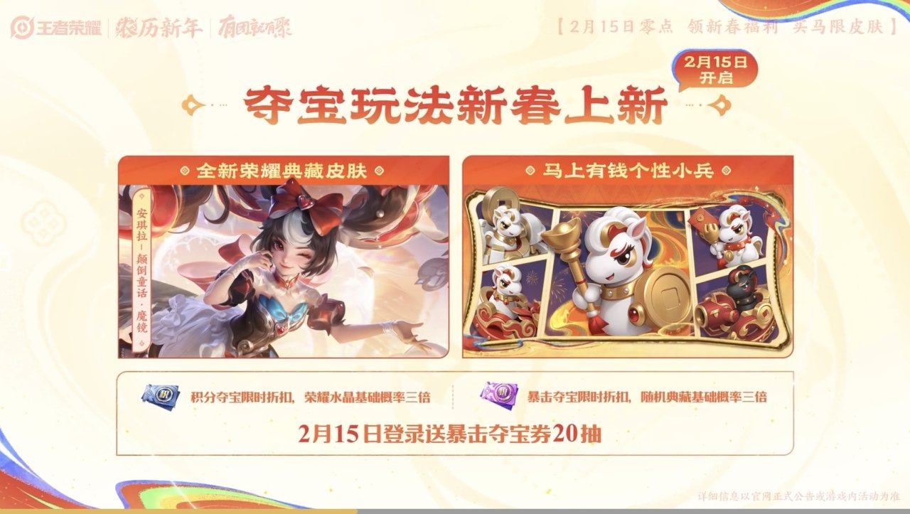全新榮耀典藏皮膚2月15日上線,奪寶折扣及基礎概率三倍同步開啓!