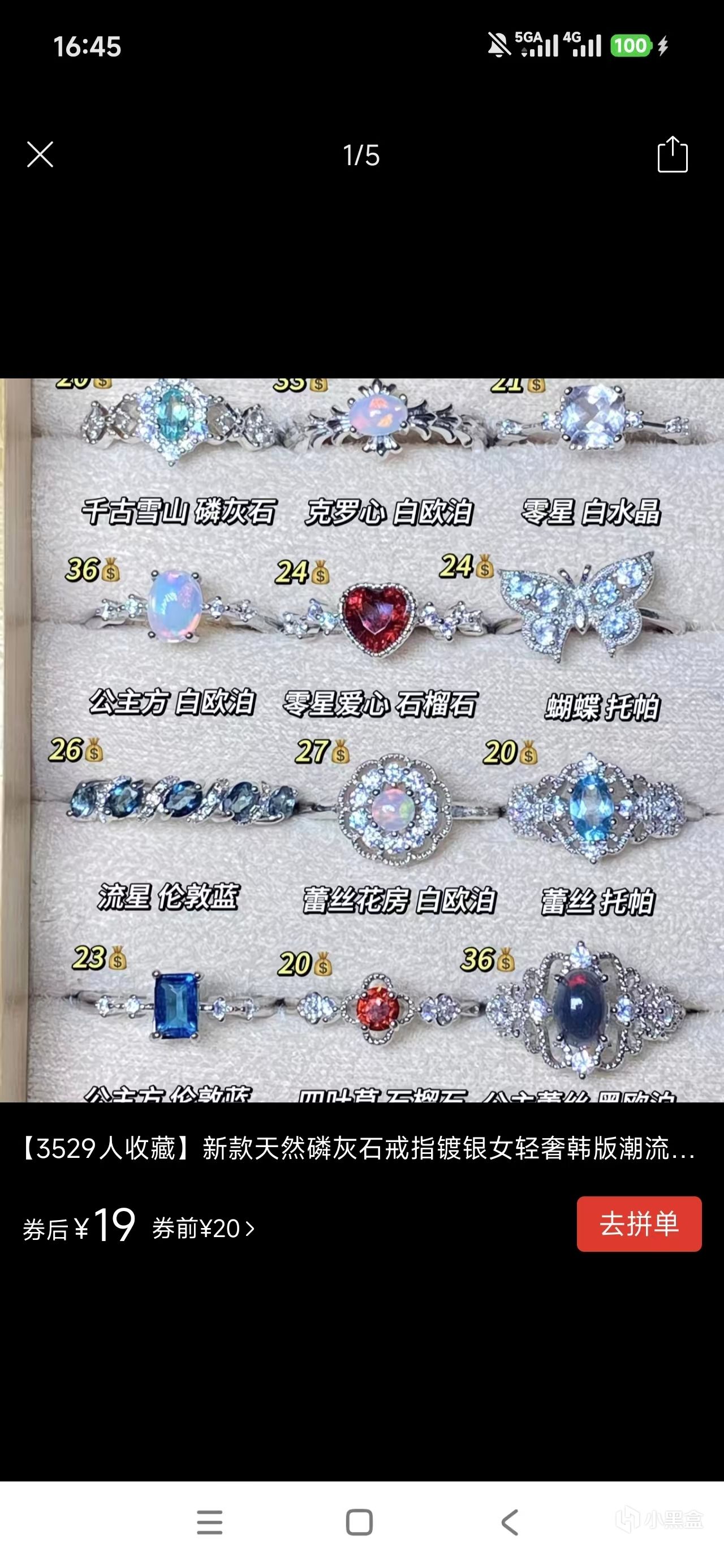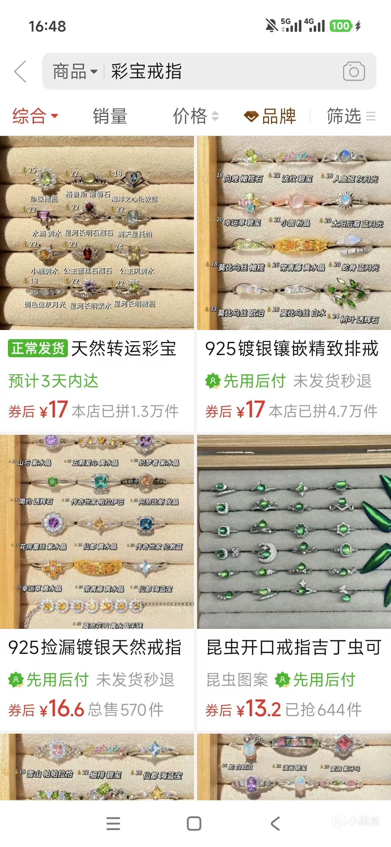 很簡單,我們直接打開某多多,搜索“彩寶戒指”就會彈出來大量的各種寶石的成品,都很便宜,十幾塊錢,合金或者銅鍍銀的材質的。