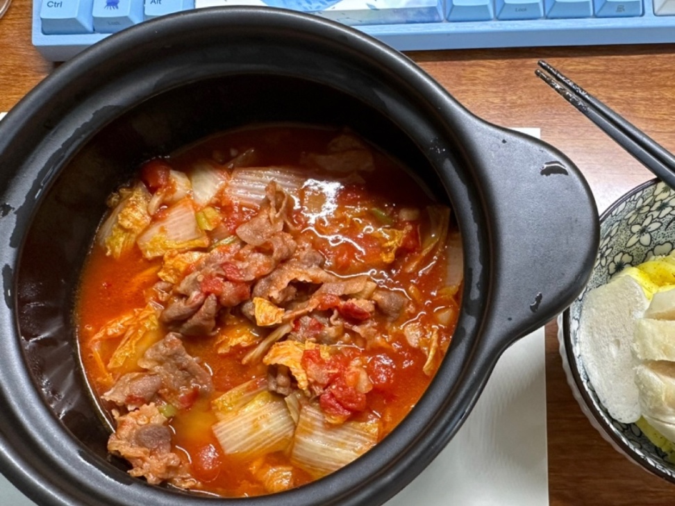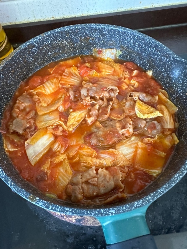 做菜慌了就很烦,准备研究研究韩国菜,家里还有点肥牛不想就去买菜就先整个简单的番茄肥牛吧