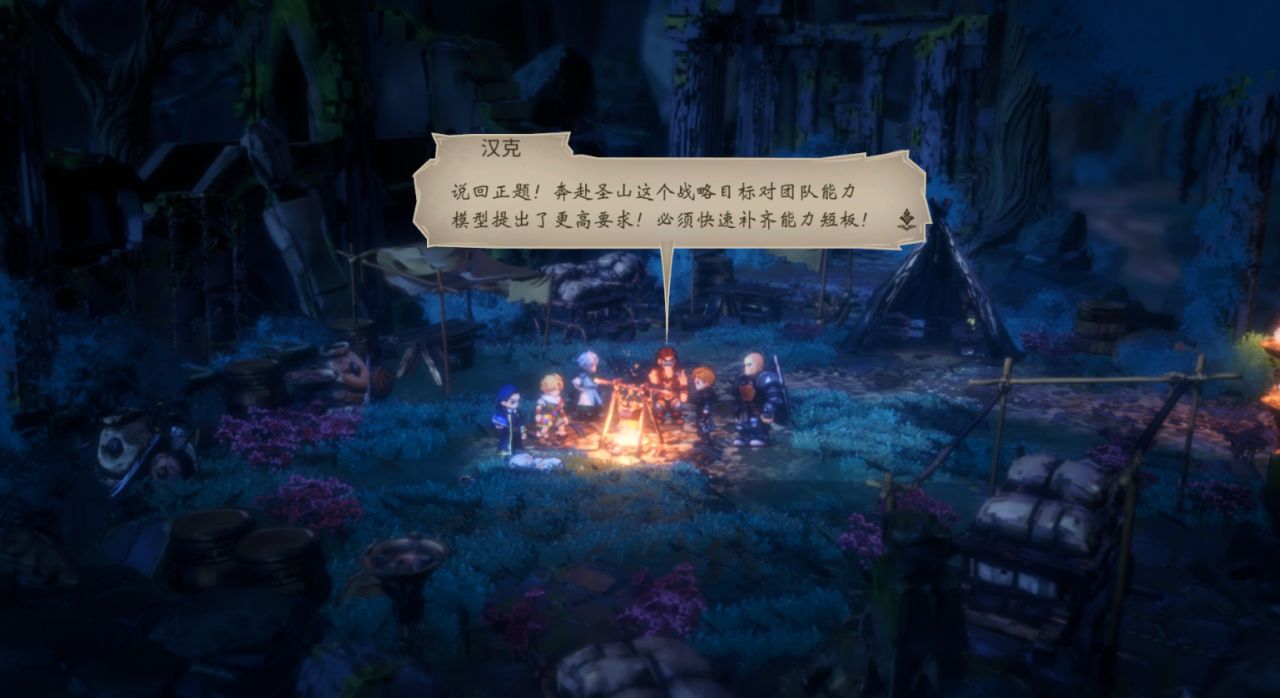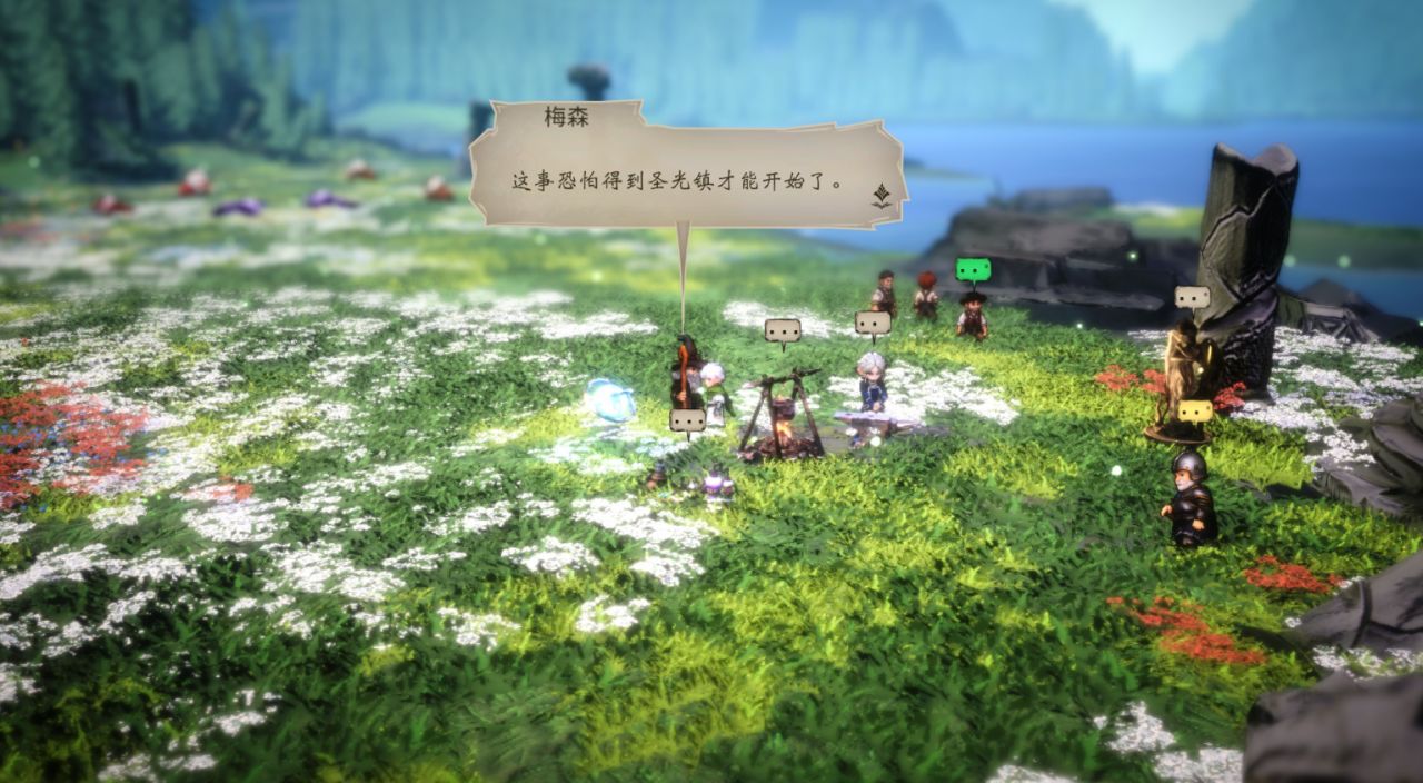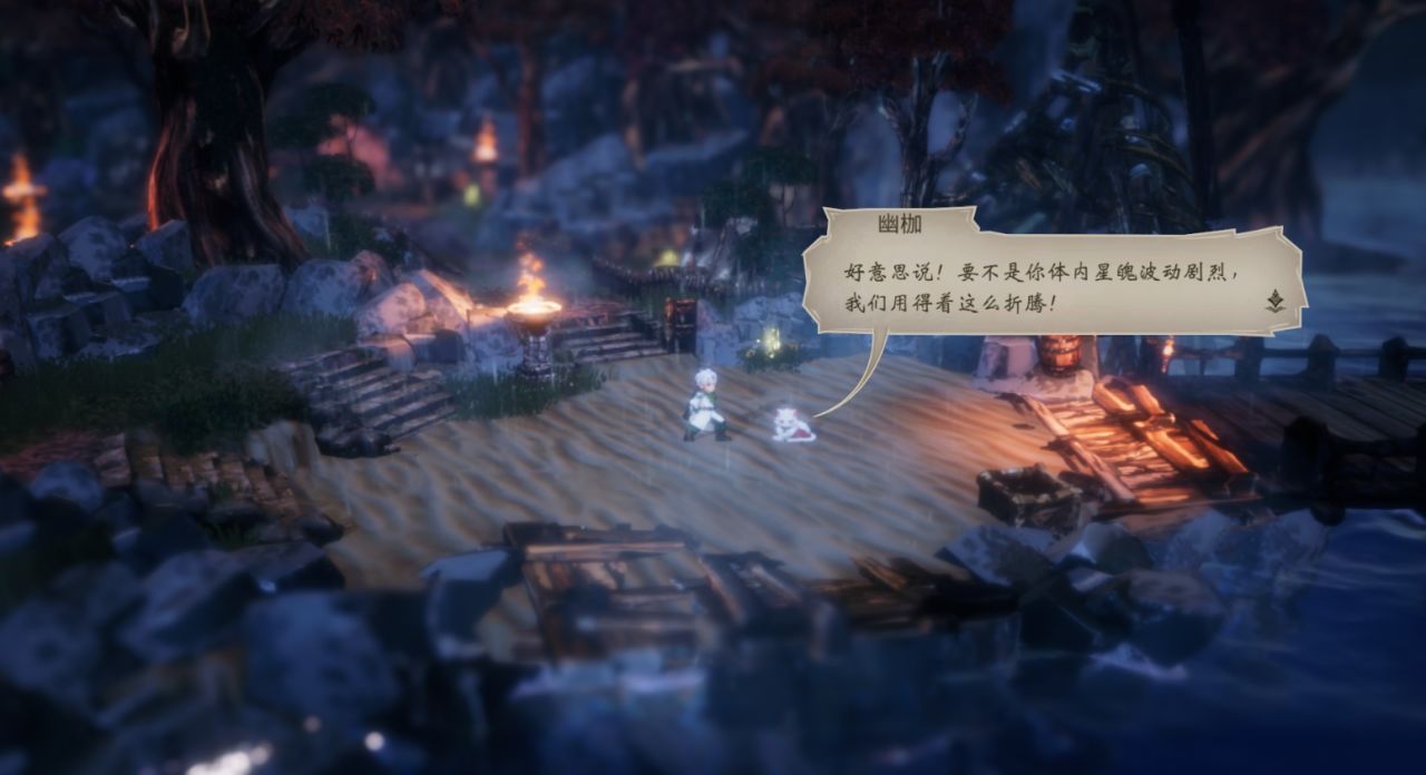 不過,當我深入體驗後,尤其經歷了從1.0到2.0兩個階段的Demo版本迭代,也發覺《星火燎原》雖然在世界觀、畫面風格及整體框架上很“八方”,但其實它的故事內核和戰鬥系統並非一昧着照搬《八方旅人》,只需淺嘗輒止就能品出它的獨到之處。