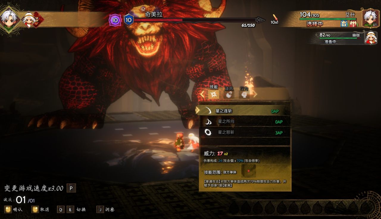 切記的是,若你沒有充足的AP去抵消該技能所需的消耗量,戰鬥開始後,系統不會自動幫你切成普攻,而是直接判定技能釋放失敗,打斷攻擊,讓你擱那罰站等着捱打。