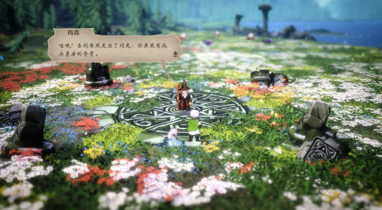 但遺憾的是,這次Demo的內容比上一個Demo更爲簡短。艾什前往草原湖畔區域,意外被一位神祕老者選中成爲勇者,拔出了需要持續注入力量的“湖畔寶劍”,隨後故事便匆匆結束。