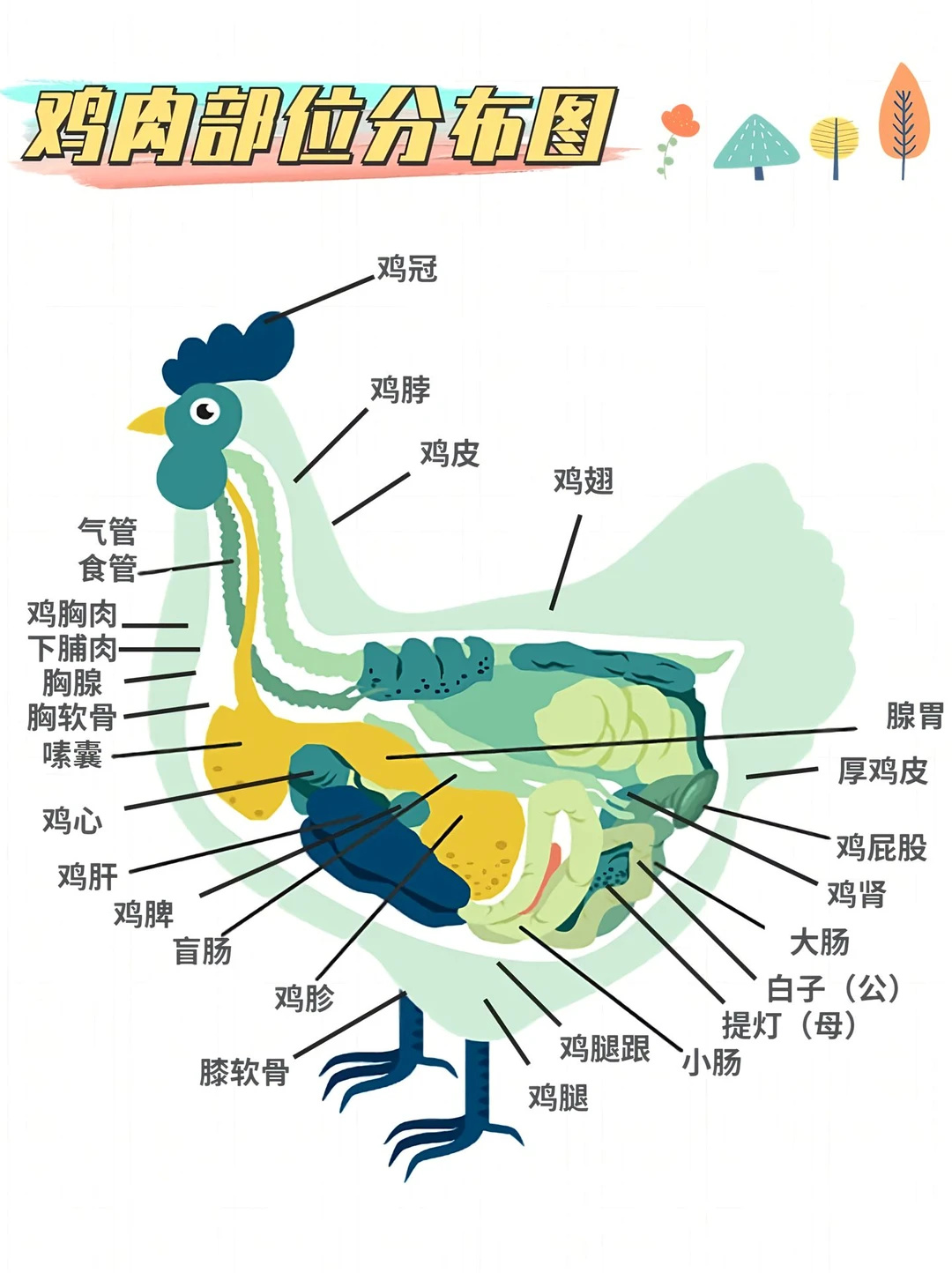 鸡尾巴与屁股中间的厚鸡皮,是油脂最多的部位。肉质软嫩,肉汁充足。