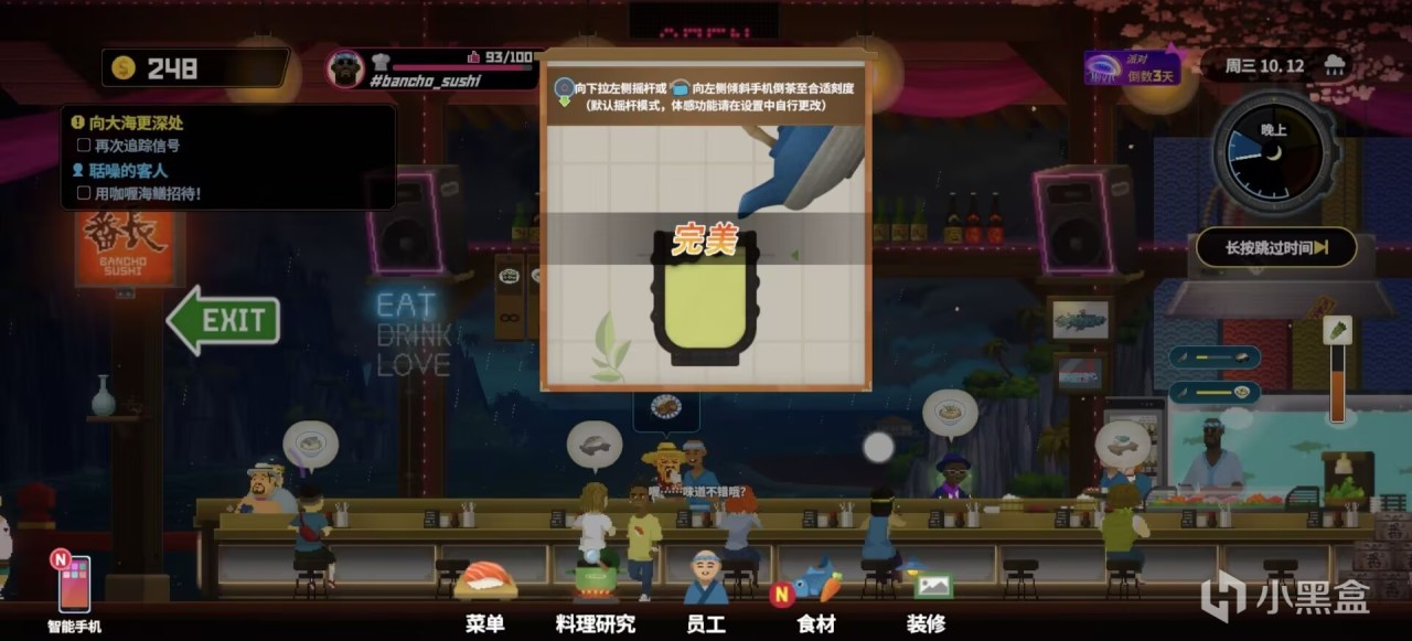 移动平台本身难以吸引出色的独立开发团队,并孵化这样的游戏,但是,这种单局可以分拆到十分钟甚至更短的游戏,更适合手机/Steam Deck等平台,而非电脑,核心就是一个“放得下拿得起”。而《潜水员戴夫》也属于这类作品,一轮出海或是端一晚上盘子也就5-10min,单次游戏可被打断,绝无大体量单机游戏那种“得划分出来十几个清净时辰”才敢握住手柄的不便感。