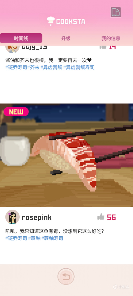——说起来,《戴夫》的菜单核心就是手机,包括电话,升级,COOKSTA,播放器等核心功能都集成在左下角的“智能手机”中,本质是为了提升戴夫扮演的代入感,但这次移动移植让它更恰如其分了——虽然核心菜单为了操作流畅还是保值横屏,单但是包括Cooksta,音乐播放器等界面直接做成竖屏,刷动态的沉浸感瞬间拉满,算是个意外之喜。