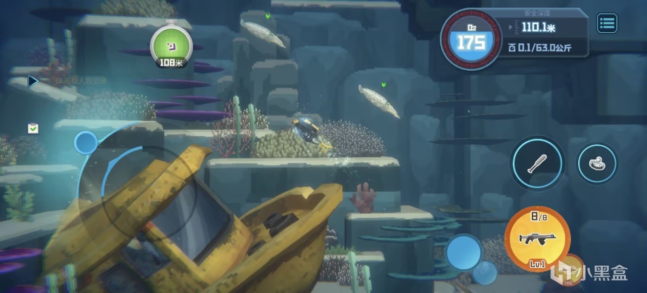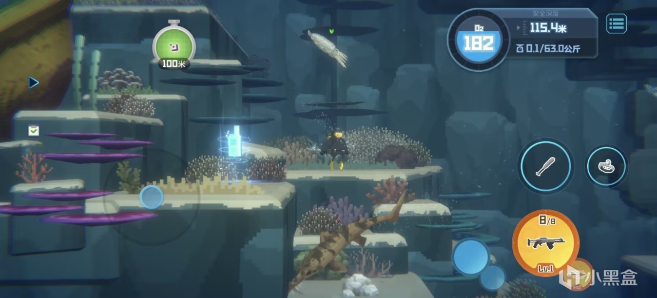 而且,恰恰是因为《潜水员戴夫》以像素美术为载体,本作在视觉上的铺张才可以在移动平台不减其表现力,且像素风格对于移动设备的性能也比较友好,支持90帧高刷。本次移植也a将店员、菜单等界面的选项按钮拉高,整体更适合移动端操作。可惜在需要快速反应的与食肉鱼类的搏斗中,手游的虚拟摇杆和需要长按后才能定向的武器设计,还是不如PC来得顺手,以过去的“贪”法来玩手游时,我经常因为满载状态下躲闪不及而翻车。