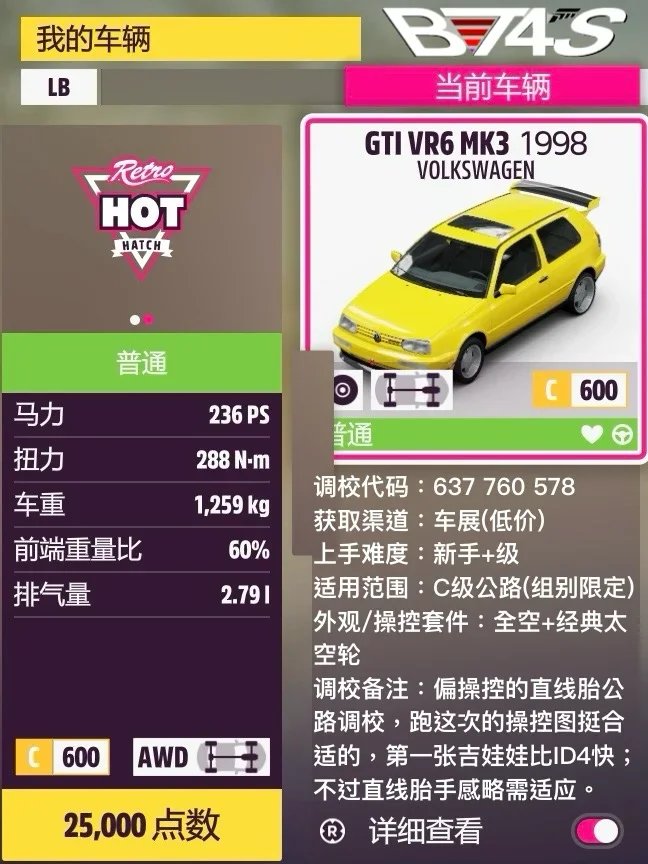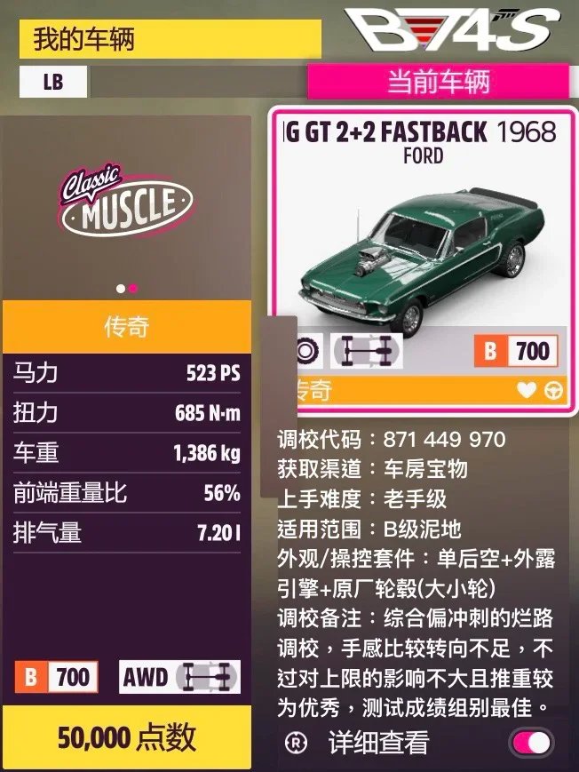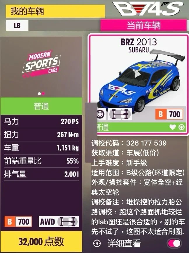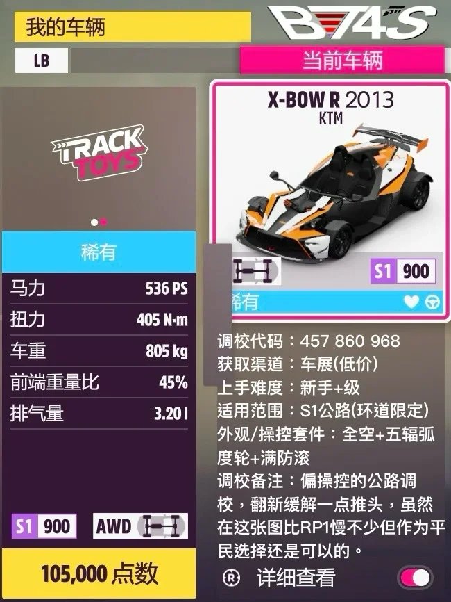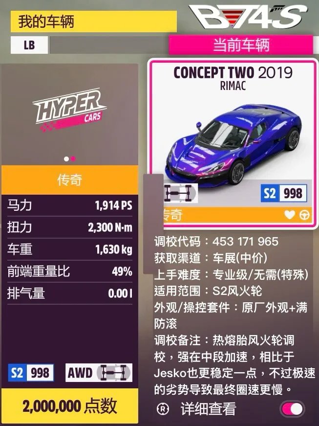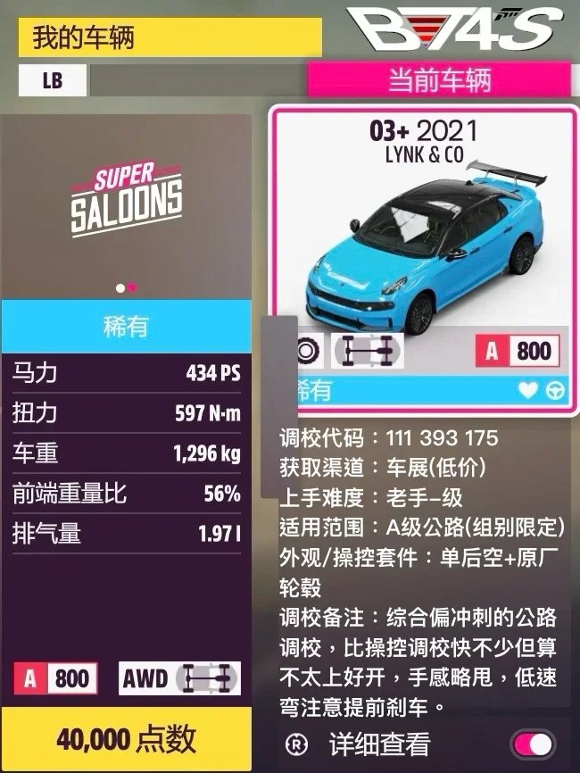 忘了这车开局送不送了,应该是不送,那没抽到的只能花50w在车展买了。或者在本期马拉松商店换也行,但是怎么算都不值,除非点数溢出不然还是优先用cr吧。搞了个兼顾dlc特技的多功能调校,底子是漂移车所以还算能漂,越野胎抓地也不算烂,清清杂没什么问题。Hoonigan家除了RS200外基本就都是玩具特技车了,不过其实这个主题还是挺有意思的,虽然个人对改装车的了解不深。然后这次录了个本期能用到这车的内容的参考视频,链接杂项参考。