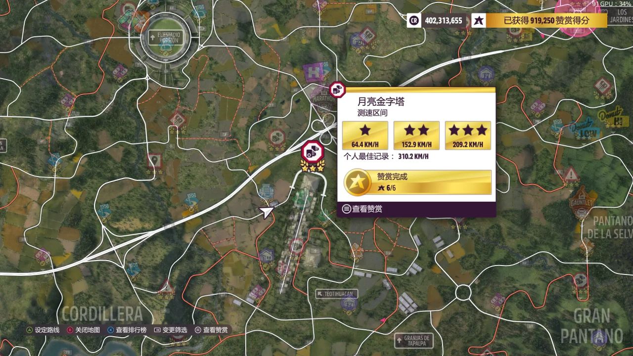 在月亮金字塔测速区间达成3星。位置如图,推荐选下面Eventlab1的两辆S1操控车。