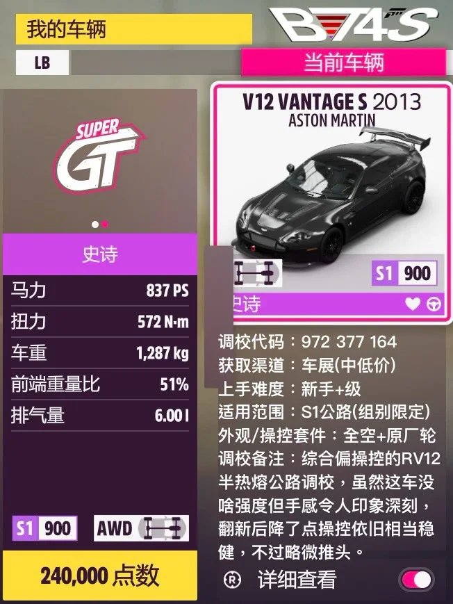 驾驶任意阿斯顿马丁Vantage赢得一场午夜对战。推荐车辆及对应等级的午夜对战位置如图。