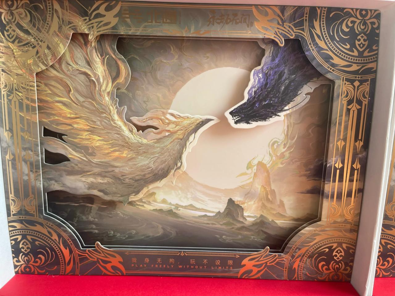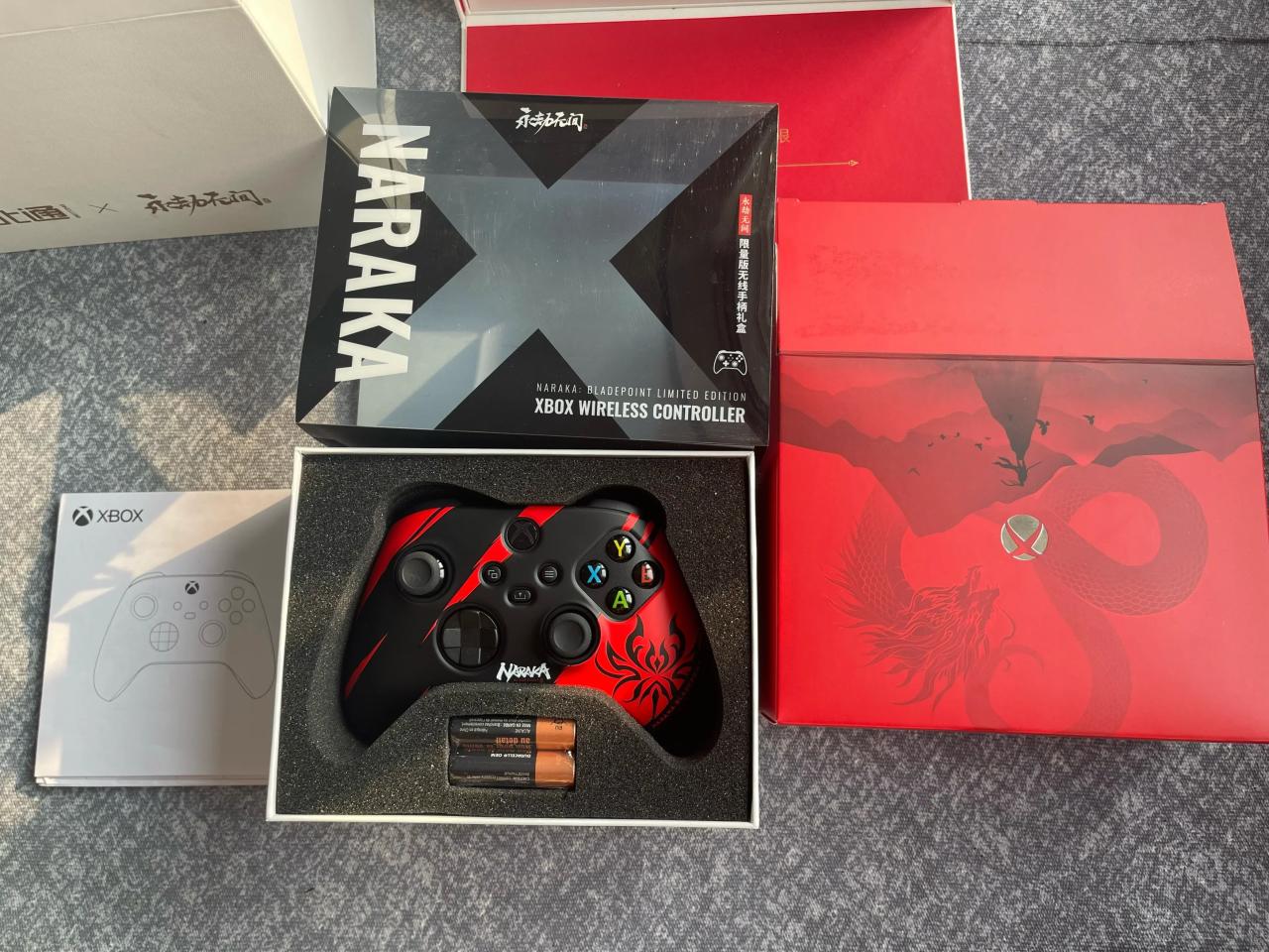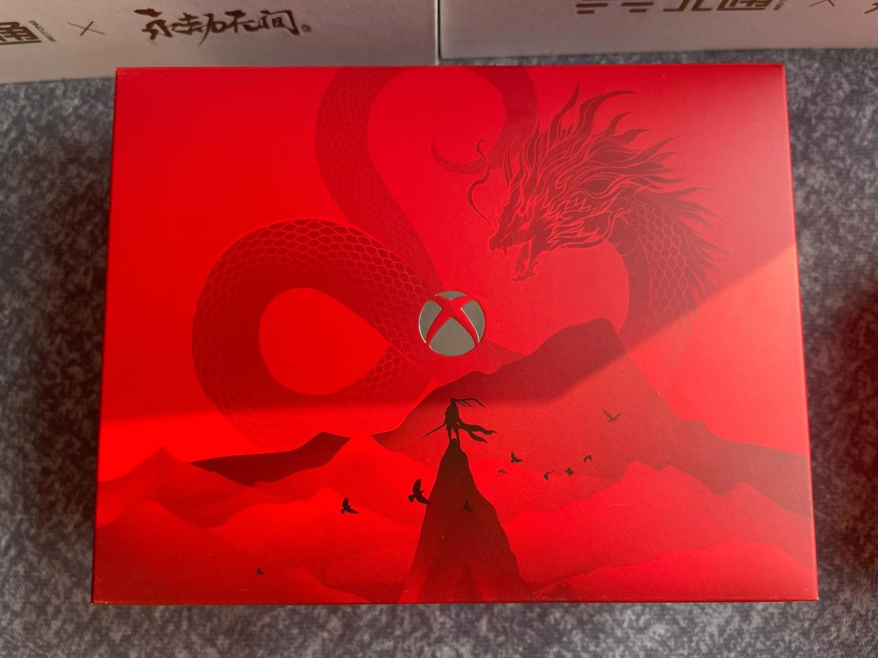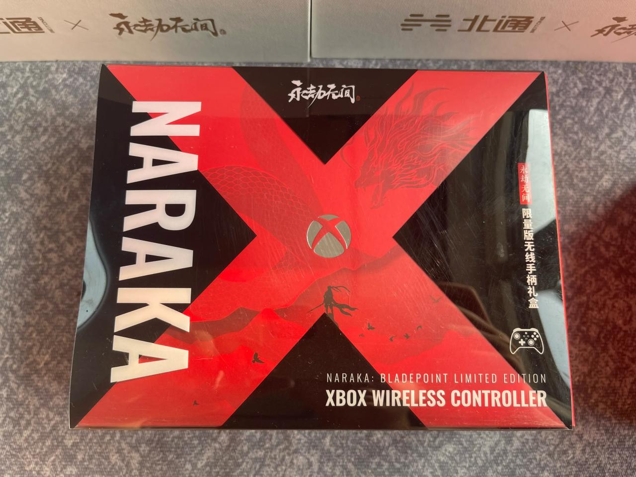Xbox手柄礼盒也做了单独的设计,做了多层包装,抽拉塑料壳上印了永劫无间的logo,拆开里面有Xboxoxlogo和一条大龙