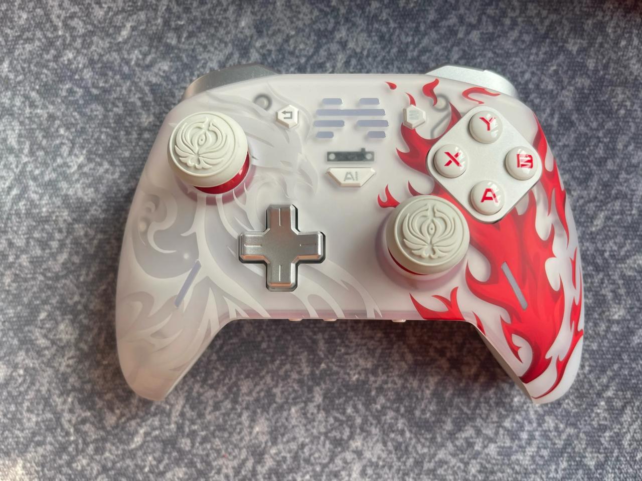 背面也是红色底壳配白色握把,底部有永劫无间的logo