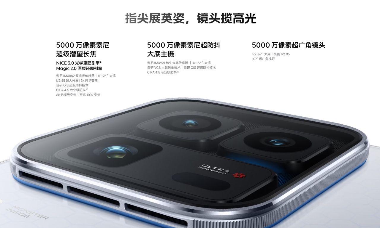 而iQOO15 Ultra本次的最大賣點肯定還是在前面的攝像頭——底下隱藏的出風口上。沒錯,下面是內置了風扇的!!!這讓以高散熱性能機聞名的iQOO系列進一步壓榨潛能,帶給玩家更極致的遊戲體驗。神奇的是,儘管裏面多裝了個風扇,拿在手裏卻並不感到重,握持手感極佳。