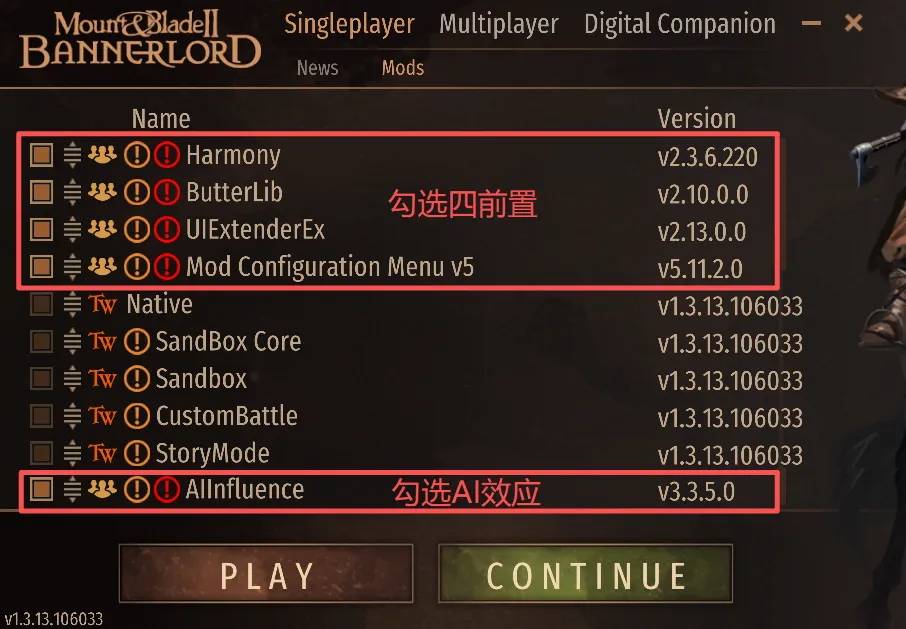 3、安裝好“AI效應”MOD後,打開啓動器,按照下方圖片進行排序即可進入遊戲