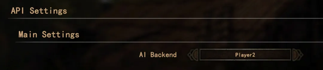 然後進入遊戲MOD選項,在AI Backend選擇Player2,URL已預設好,無需進行額外操作,在遊戲內與任意 NPC 開啓對話選擇交談(AI對話)即可。