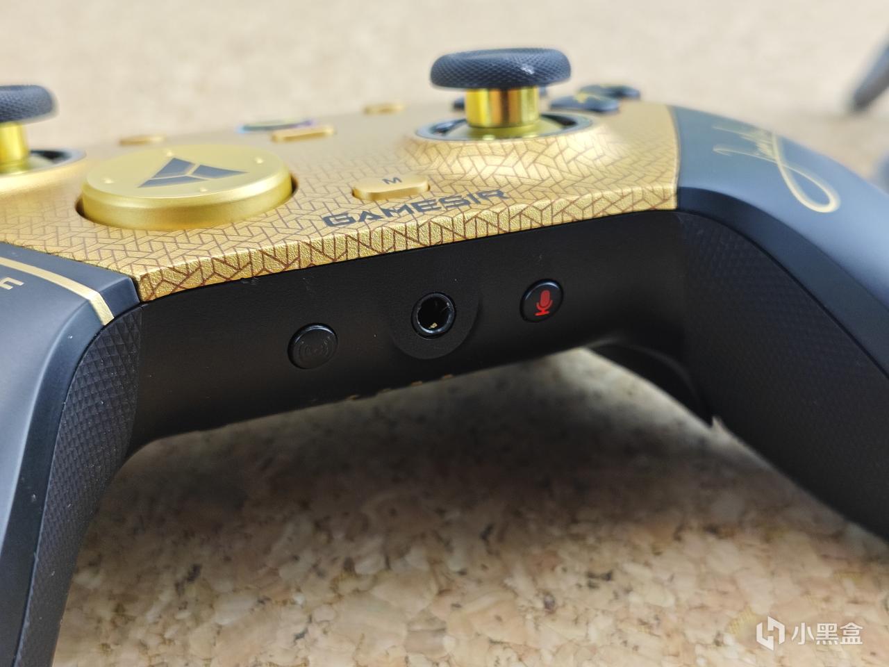 手柄依舊沿用了g7 Pro的模具,握持手感方面完全沒有變化,這點不再贅述。面殼爲三區域磁吸設計,兩側手把做了細膩的類膚處理,居中的金色面板則做了磨砂打磨。