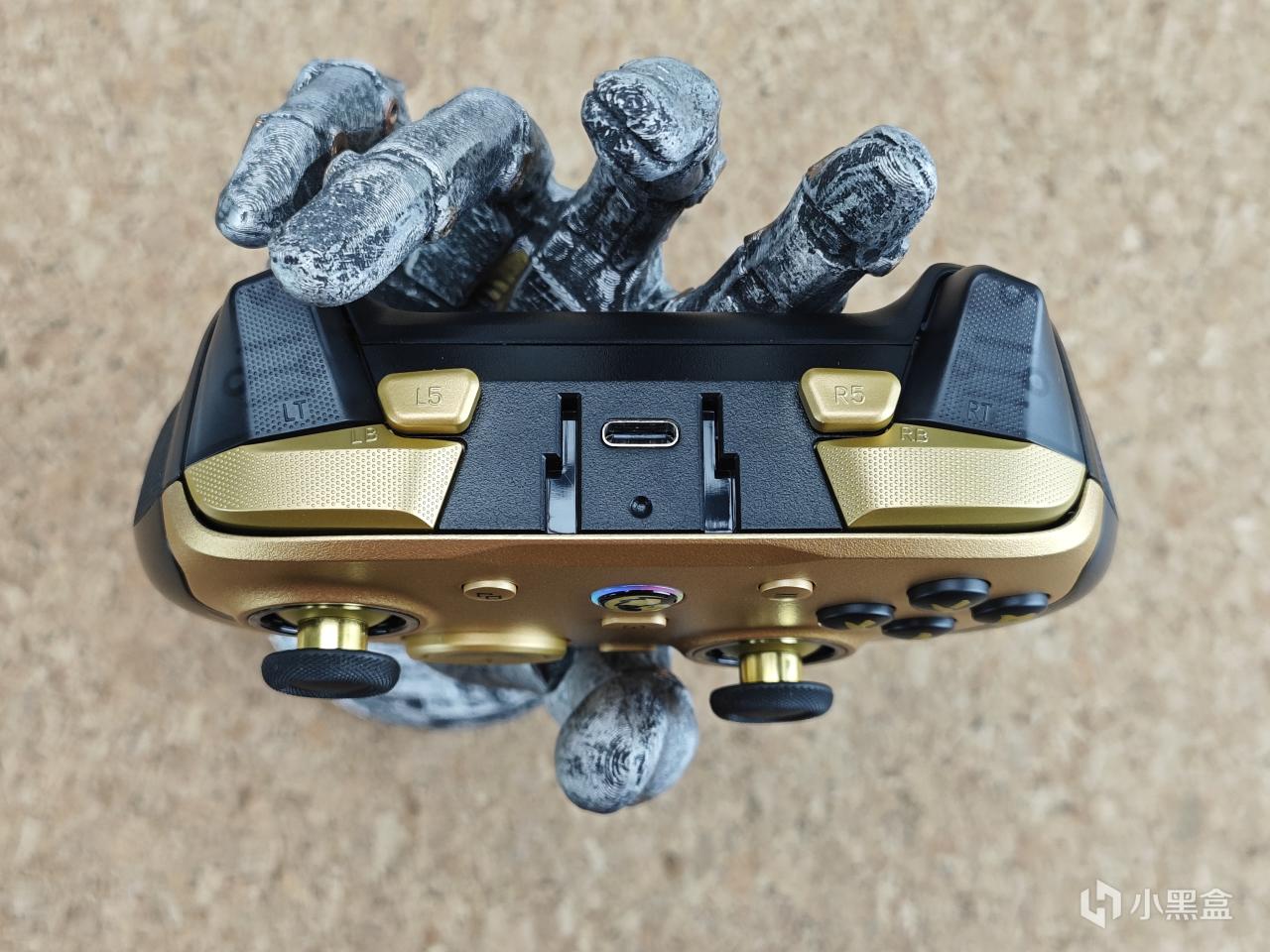 手柄肩鍵用的是輕觸開關,按壓反饋適中,回彈迅速,手感一致性很好。扳機爲256階線性扳機跟1mm的微動扳機雙切方案。霍班機能夠帶來細膩精準的反饋,適合賽車類型的遊戲。而微動扳機觸發更迅速,對於FPS遊戲或者內魂遊戲有着極高的加成。肩部內側依舊保留了l5跟r5兩顆拓展的肩鍵,這兩顆按鍵依舊支持自定義,實用性非常強。