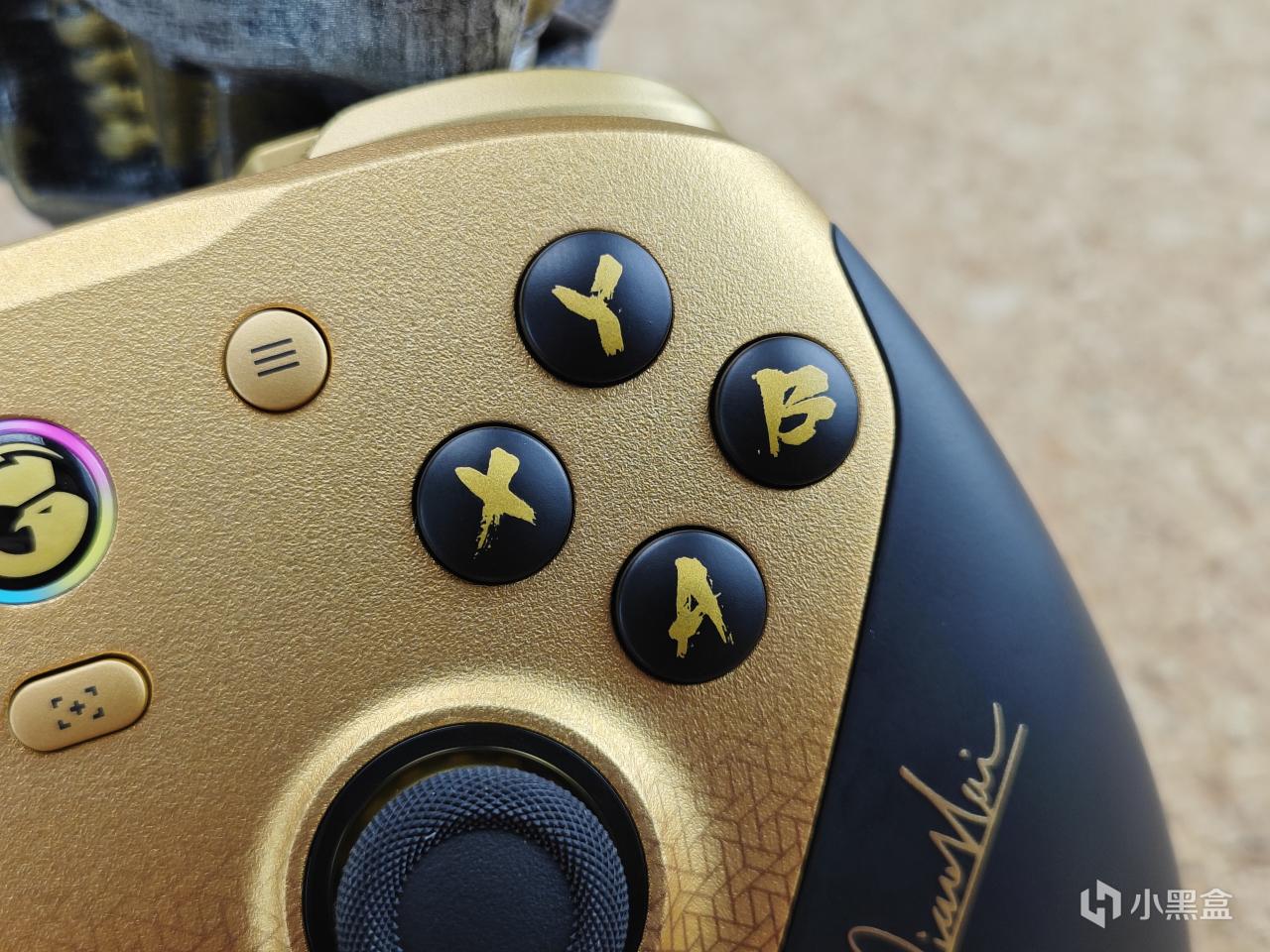 手柄居中位置有五顆功能鍵,分別是菜單,Home鍵跟設置鍵,下方一個截圖鍵,最下方是一個多功能的m鍵。每個按鍵都可以自定義功能,Home鍵由原本的xbox標識改爲了小雞的logo,且外圈顏色也可調rgb,我個人覺得是很好看的。