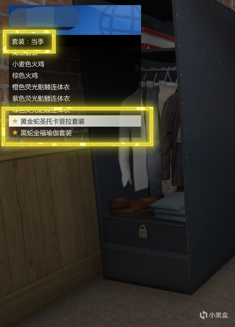 收集完成后自动获得衣服到衣柜中:套装-套装:当季。