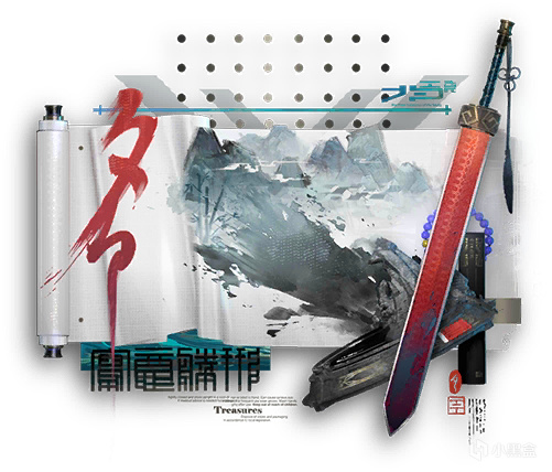 “灰齊山頂,竹林陋屋,紅鋒染墨,劍指長卷。
