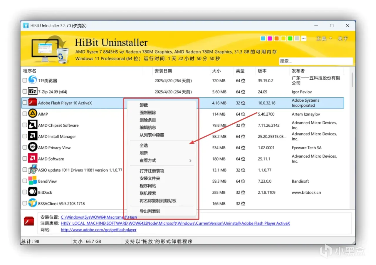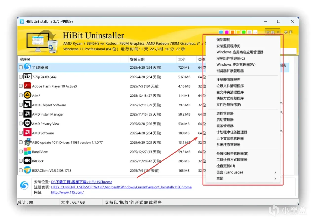 用過不少卸載工具的朋友都知道,普通卸載軟件要麼功能單一,要麼捆綁廣告,而 HiBit Uninstaller 完全不一樣,它是實打實的良心工具,最新版 4.0.10 僅 4.32MB 的體積,安裝包小到忽略不計,卻能實現旗艦級的卸載清理功能,不管是電腦小白還是資深玩家,用一次就會愛上。