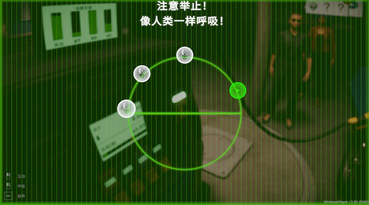 比如他们会让你像人类一样呼吸,若绿圈转到白圈内,就得立马按下左键保持一个正常的呼吸节奏;