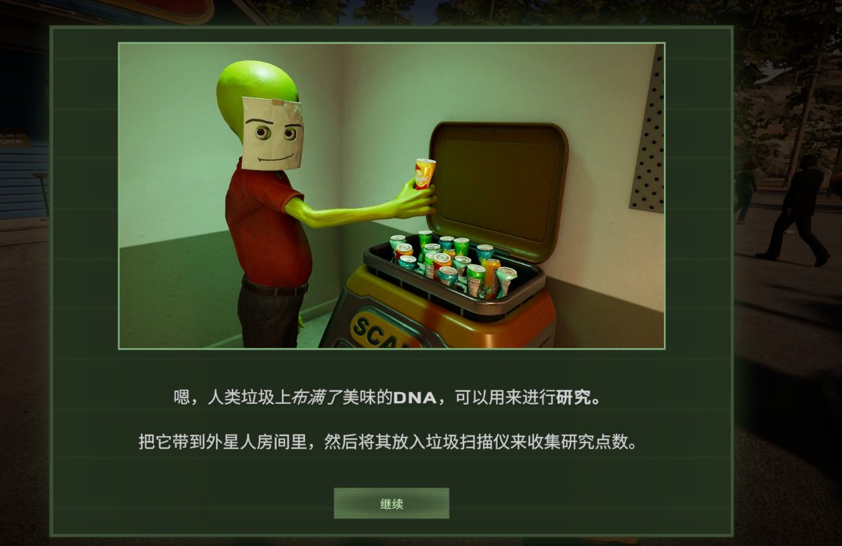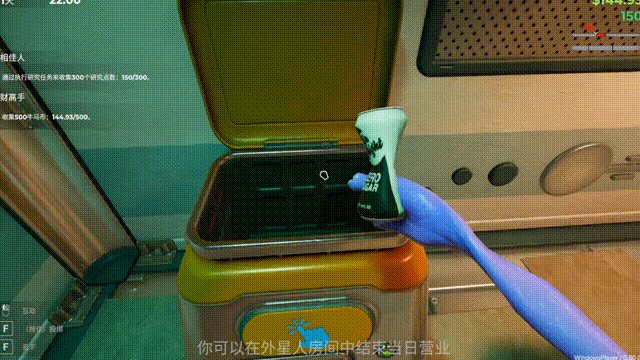 还记得人类丢这些易拉罐么?捡到这些易拉罐,不要把它丢进垃圾箱,而是可以丢进小房间里的回收箱上,将这群有机垃圾转化为“外星研究点数”。