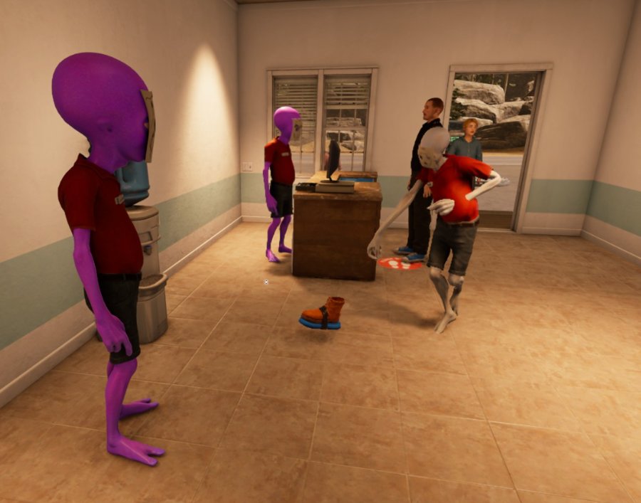 一旦被调查员或顾客发现你们实际上是假扮成人类的外来物种,他们就会毫不犹豫地一枪崩掉你的脑袋🧠——把你打成一滩黏糊糊的“外星果冻”。
