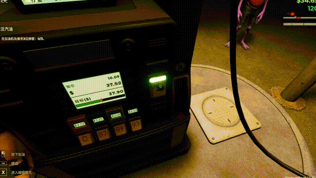 收钱→按照需求选油→把油枪捅进燃油加注口→长按左键加到顾客想要的油量(到红条截止)→结束完工。