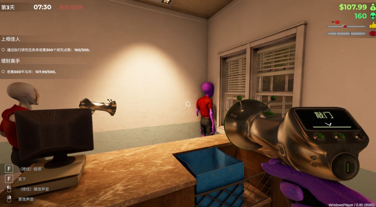 所以要想苟活到中后期步入人类的研究阶段,在前期时你们的主要目的就是先攒钱、攒研究点数,顺利熬过一切上门查水表的行为......渡过一天又一天的枯燥营业日。