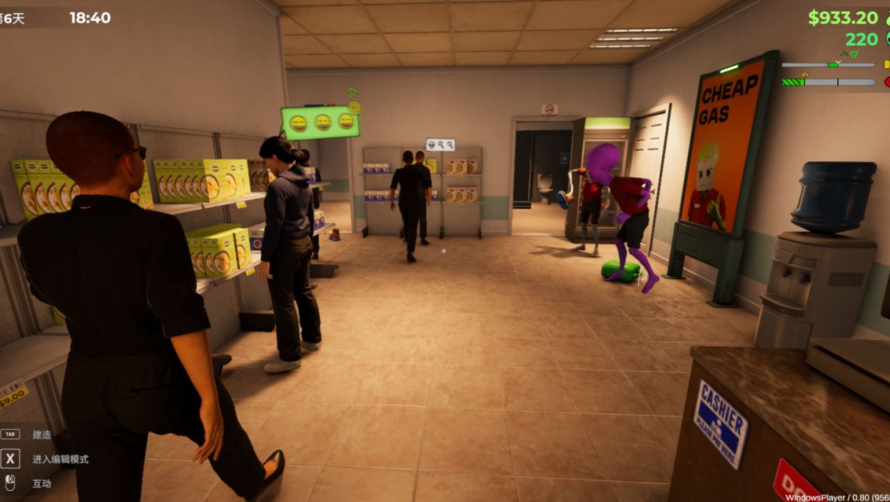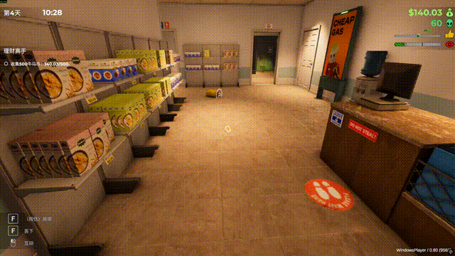 而游戏玩法也还是如上述情景所示:进货、摆货架、上架商品、往油罐里存满汽油、整装待发后、佩戴好工牌、开始上班。