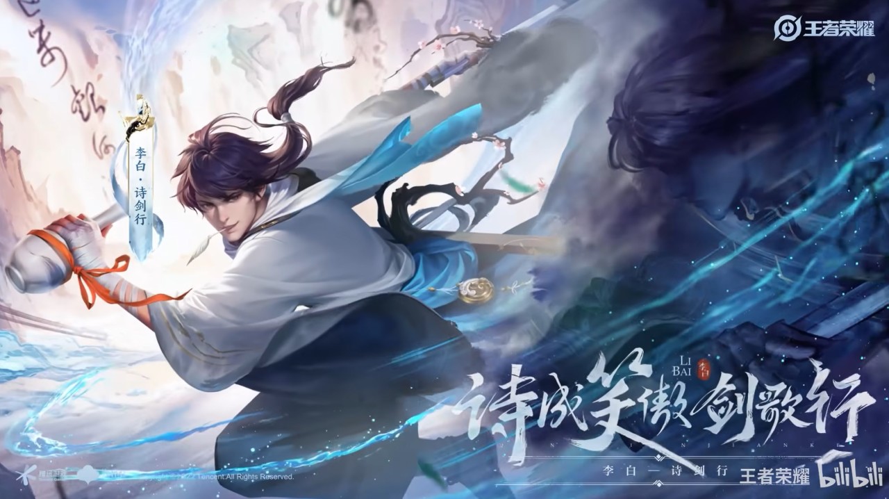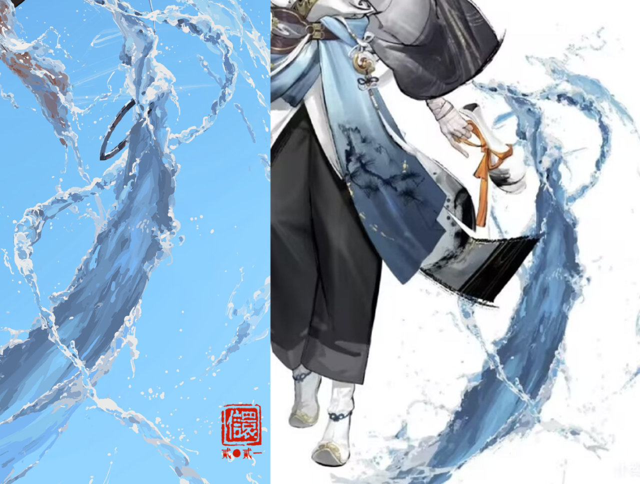 事件:王者荣耀于2022年12月24日正式上架的【李白-诗剑行】皮肤,直接抠取并使用了一张【666K信譞】创作于 2021 年的原创作品(水巫-水吉)。