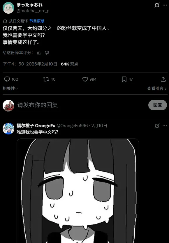 然后短短两天,她25%的粉丝都变成了中国网友,而评论区更是被汉语占领了。然后她弱弱的问:“我也要学汉语吗?”